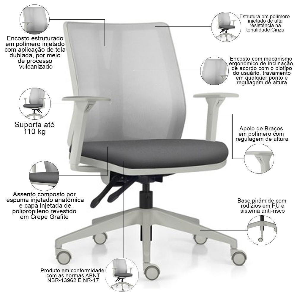 Cadeira De Escritório Giratória Diretor Flow F02 Base Cinza Crepe Grafite - Lyam Decor