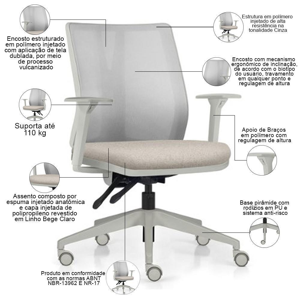 Kit 2 Cadeiras De Escritório Giratória Diretor Flow F02 Base Cinza Linho Bege Claro - Lyam Decor