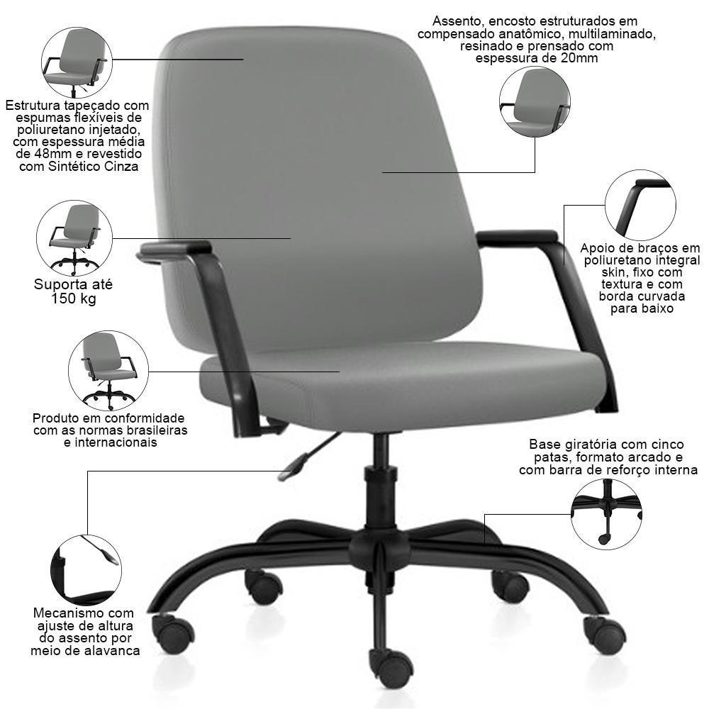 Cadeira Executiva Diretor Base Giratória Hub F02 Sintético Cinza - Lyam Decor