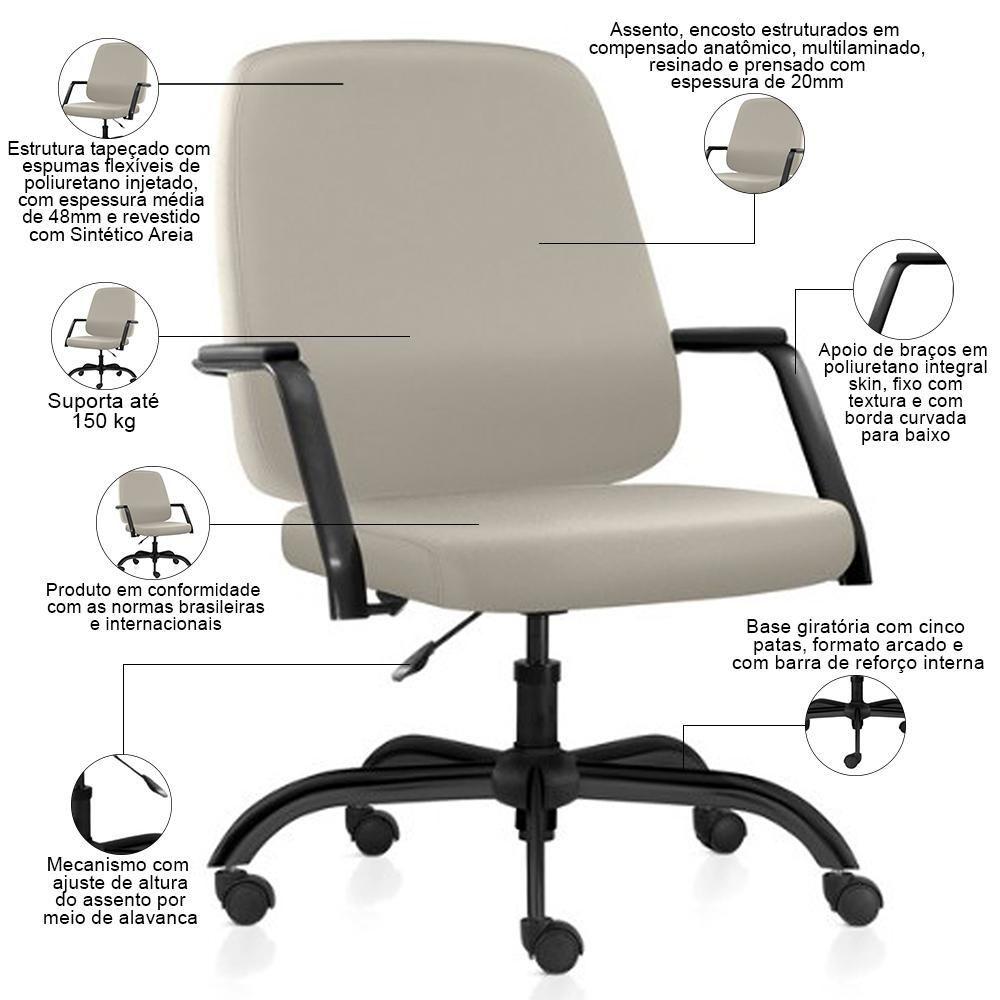 Cadeira Executiva Diretor Base Giratória Hub F02 Sintético Areia - Lyam Decor