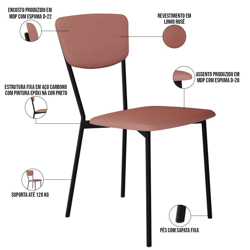 Cadeira Estofada Para Sala De Jantar Village Preto C01 Linho Rosê - Lyam DecorDesfrute de momentos inesquecíveis com a Cadeira Village, projetada para oferecer o máximo de conforto e elegância com seu estilo retrô. Com sua estrutura de aço na tonalidade preto e assento e encosto estofados com materiais de altíssima qualidade, ela proporciona suporte ideal para longas refeições e conversas agradáveis. Além de combinar durabilidade e estilo, ela é a escolha perfeita para quem busca sofisticação e bem-estar em cada detalhe. Transforme sua sala de jantar com a nossa Cadeira Village. Aproveite!Dimensões da Cadeira (L x A x P)43 x 83 x 53 cmAltura do chão ao assento: 49 cmLargura do encosto: 42 cmAltura do encosto: 23 cmCaracterísticas:Estrutura fixa em aço carbono com pintura epóxi na cor preto.Encosto produzido em MDP com espuma D-22.Assento produzido em MDP com espuma D-28.Revestimento em Linho na cor Rosê.Pés com sapatas fixa.Peso suportado de até 120 kg.- Por se tratar de estofado as medidas podem ter uma pequena variação de até 3 cm.- A tonalidade do produto real poderá ter ligeira variação devido o lote de tecidos.- A limpeza deve ser feita com pano levemente umedecido em água limpa, sem esfregar, não utilizar produtos abrasivos, desengordurantes, álcool ou solvente.Observações importantes:- Produto para uso residencial em ambiente interno, não devendo ficar exposto diretamente ao sol, calor e umidade excessivos.- Pode haver alguma diferença de tonalidade entre a imagem e o produto real, por conta do tratamento de imagens e a calibração de cores do seu monitor.- As imagens são meramente ilustrativas, não acompanham objetos de decoração e eletrônicos.- Ao receber a mercadoria, o cliente deve verificar as condições da embalagem, caso haja alguma não assine o de .- Montagem, desmontagem e outras instalações serão de responsabilidade do cliente. Não nos responsabilizamos, no ato da , por subir escadas/elevadores ou pelo por guincho em apartamentos. Eventuais despesas são de responsabilidade do comprador.- Confira as dimensões do produto e certifique-se de que passará normalmente por supostos elevadores, portas, escadas e/ou corredores de sua residência.Color: Rosa | ColorFamily: Rosa | ColorSimple: Rosa | ColorSupplier: Rosê | Material: Estrutura em Aço, MDP, Revestimento em Linho, Couro sintético e espuma | MaterialFamily: Aço, MDP, Linho e espuma | Model: Village | OriginCountry: | OriginState: PR | ProductContents: 01 Cadeira | ProductHeight: 83 cm | ProductInstructions: Produto para uso em ambiente interno, nao devendo ficar exposto ao sol, calor e umidade excessivos. | ProductLength: 53 cm | ProductWarranty: 90 dias após o do produto | ProductWeight: 6,5 kg | ProductWidth: 43 cm | SizeDescription: Altura: 83 cm x Largura: 43 cm x Profundidade: 53cm | SupplierSimpleName: Cadeira Estofada Para Sala de Jantar Village Preto C01 Linho Rosê - Lyam Decor
