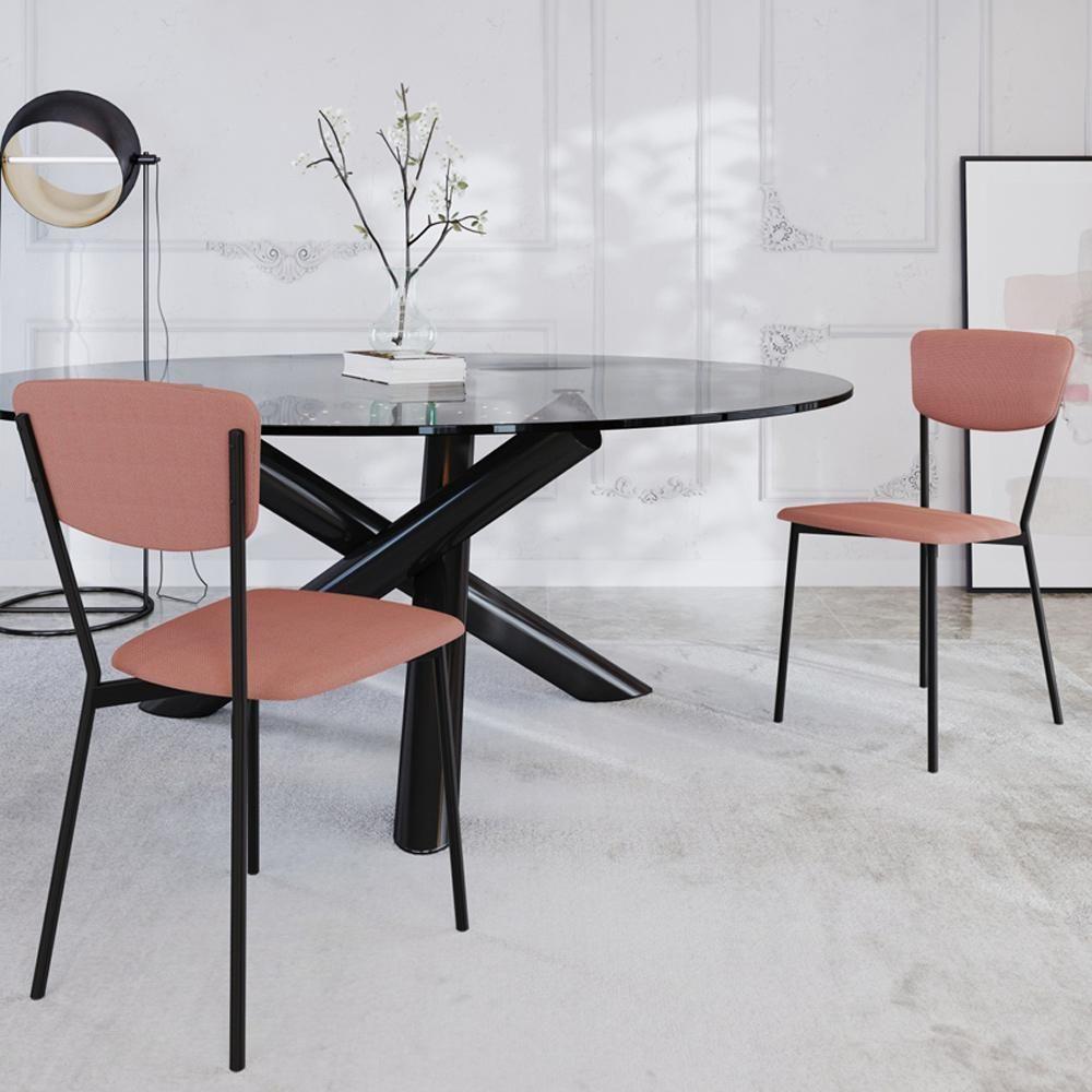Cadeira Estofada Para Sala De Jantar Village Preto C01 Linho Rosê - Lyam Decor