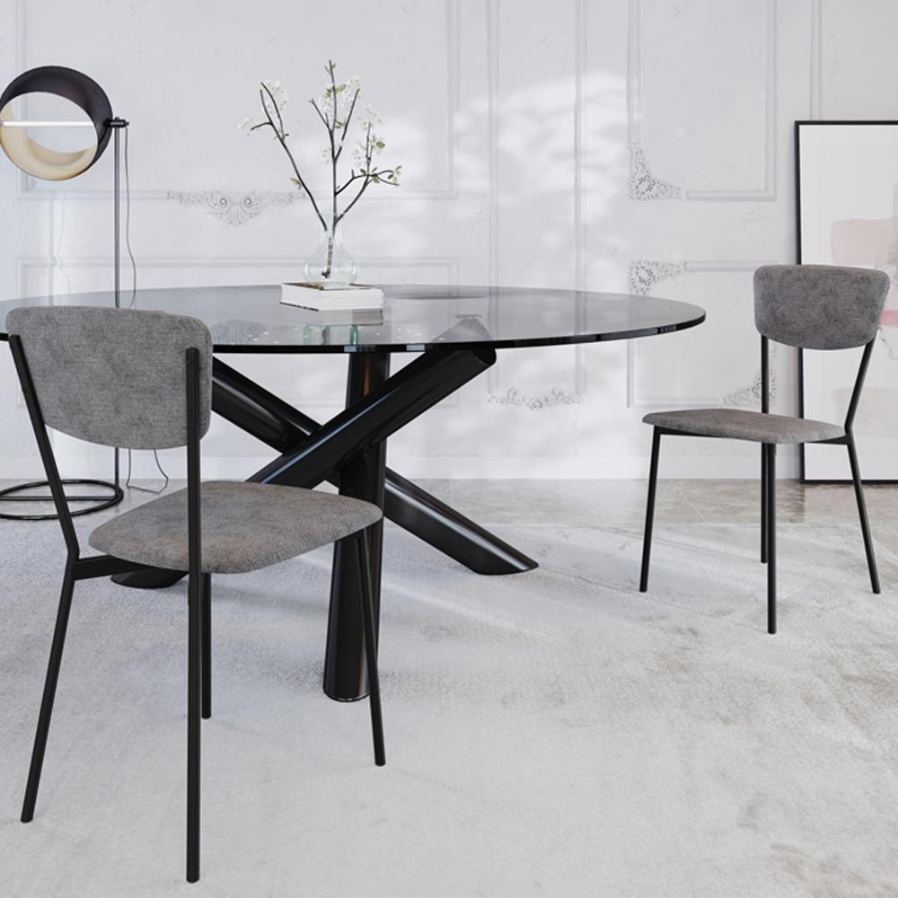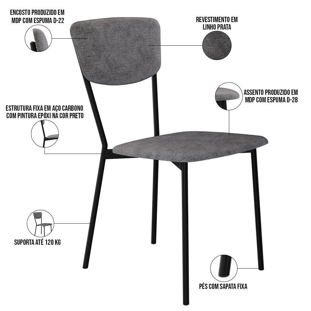 Cadeira Estofada Para Sala De Jantar Village Preto C01 Linho Prata - Lyam Decor
