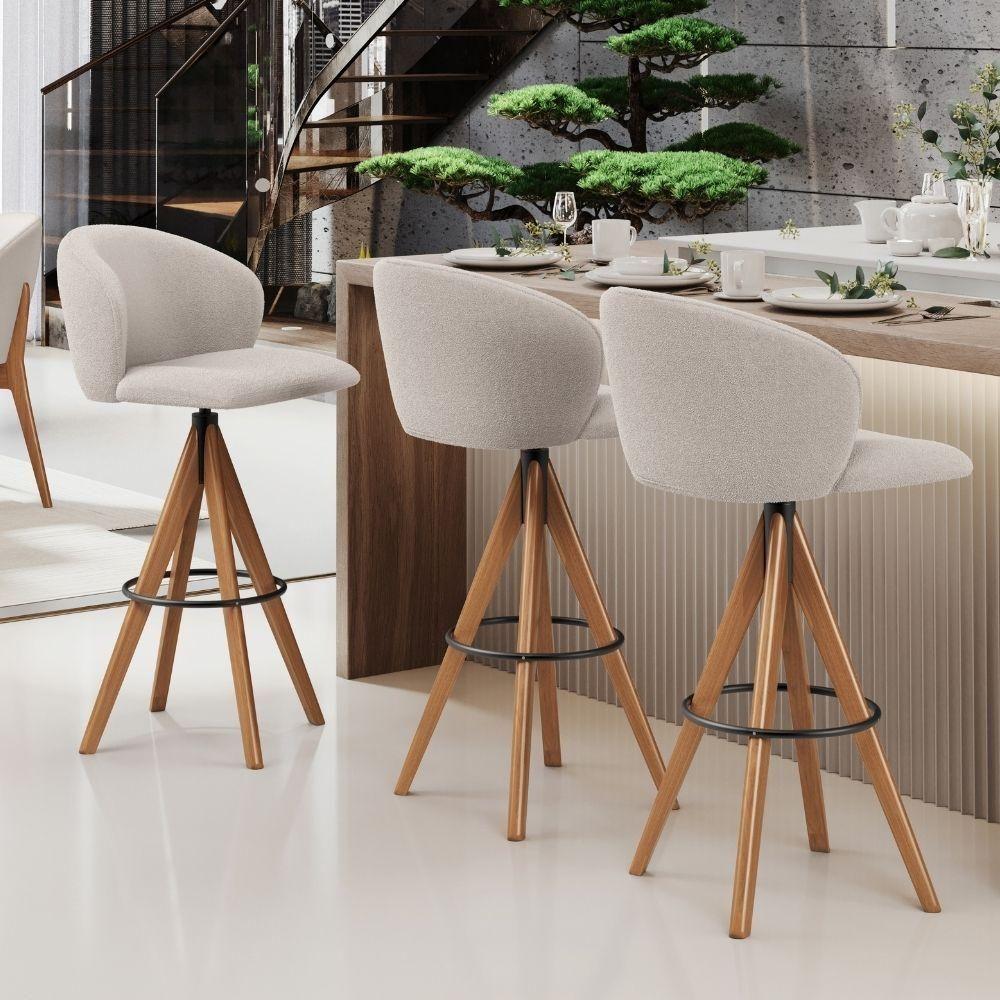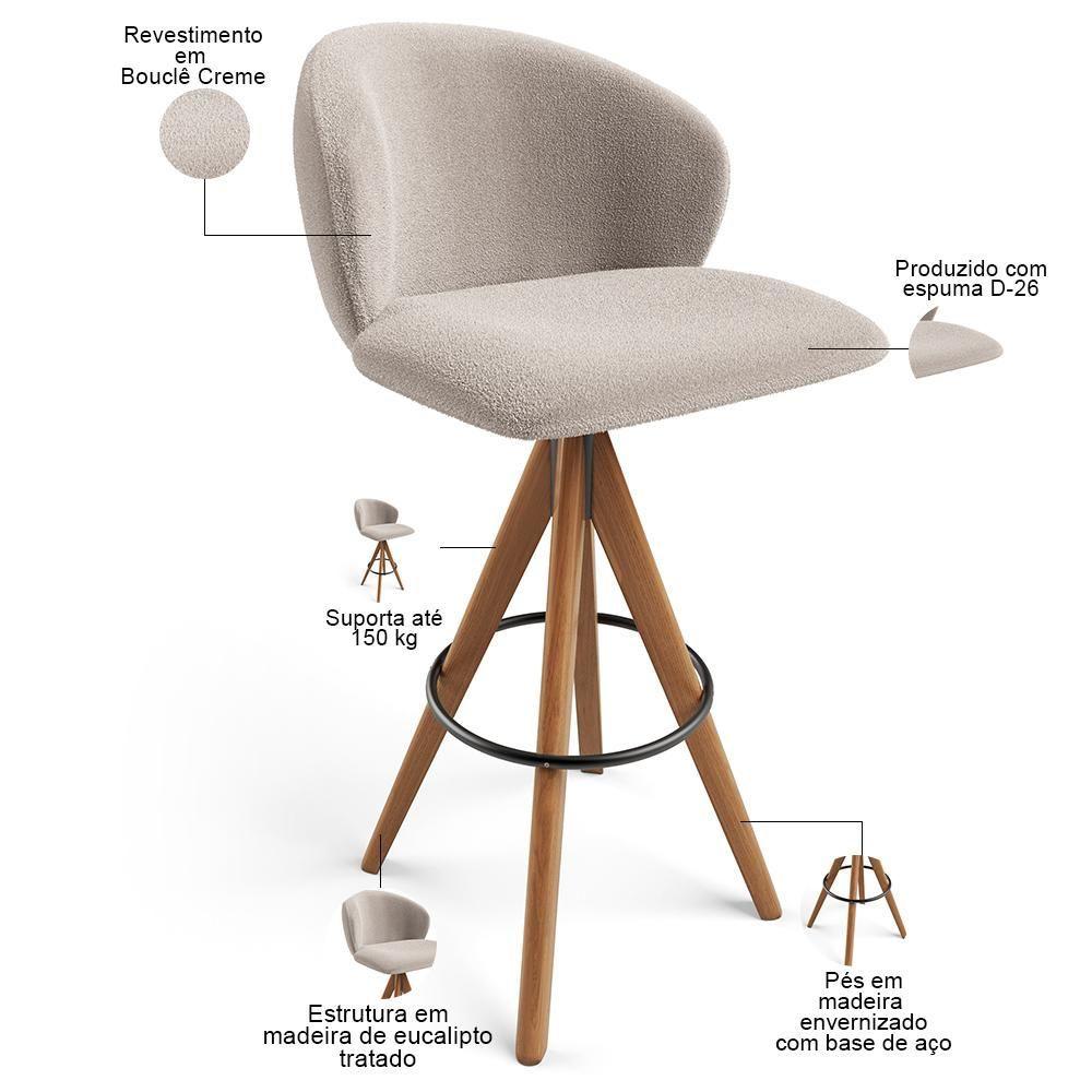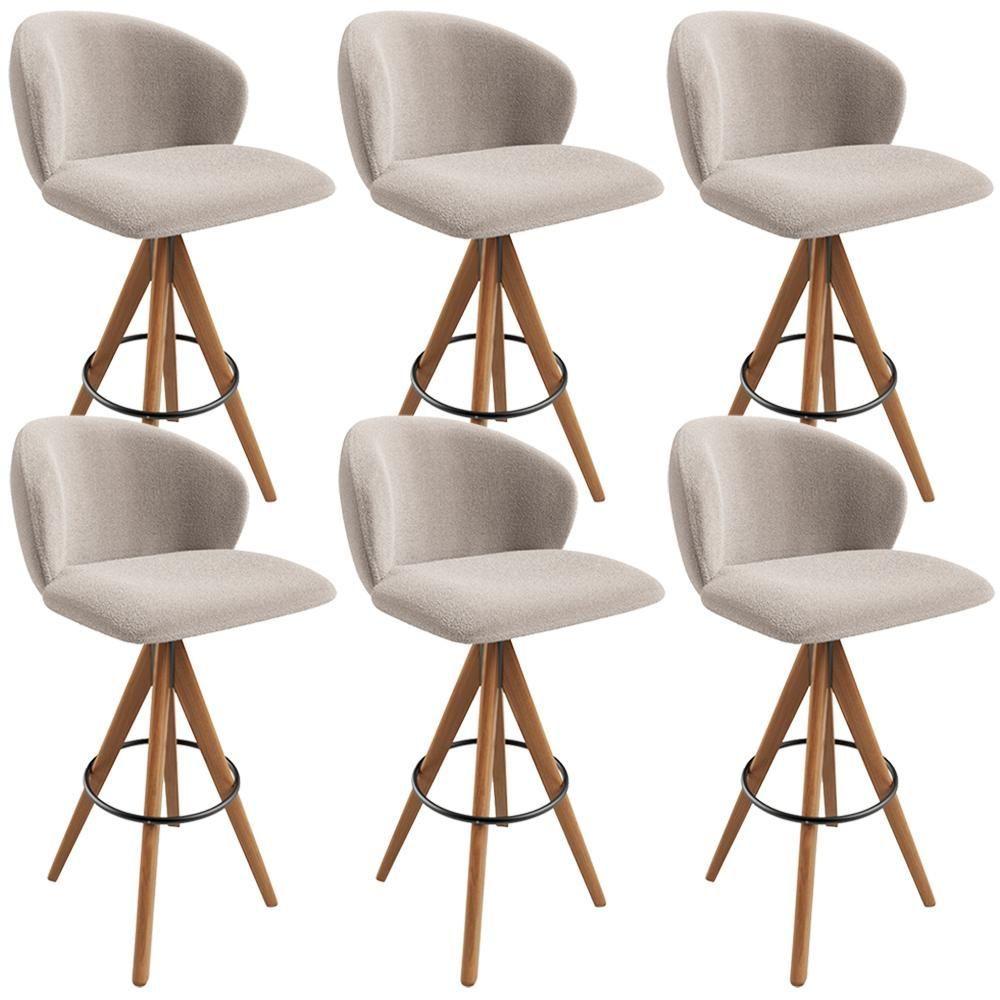 Kit 06 Banquetas Alta Bar Cozinha Sala De Jantar Bar Mia L02 Bouclê Creme - Lyam Decor