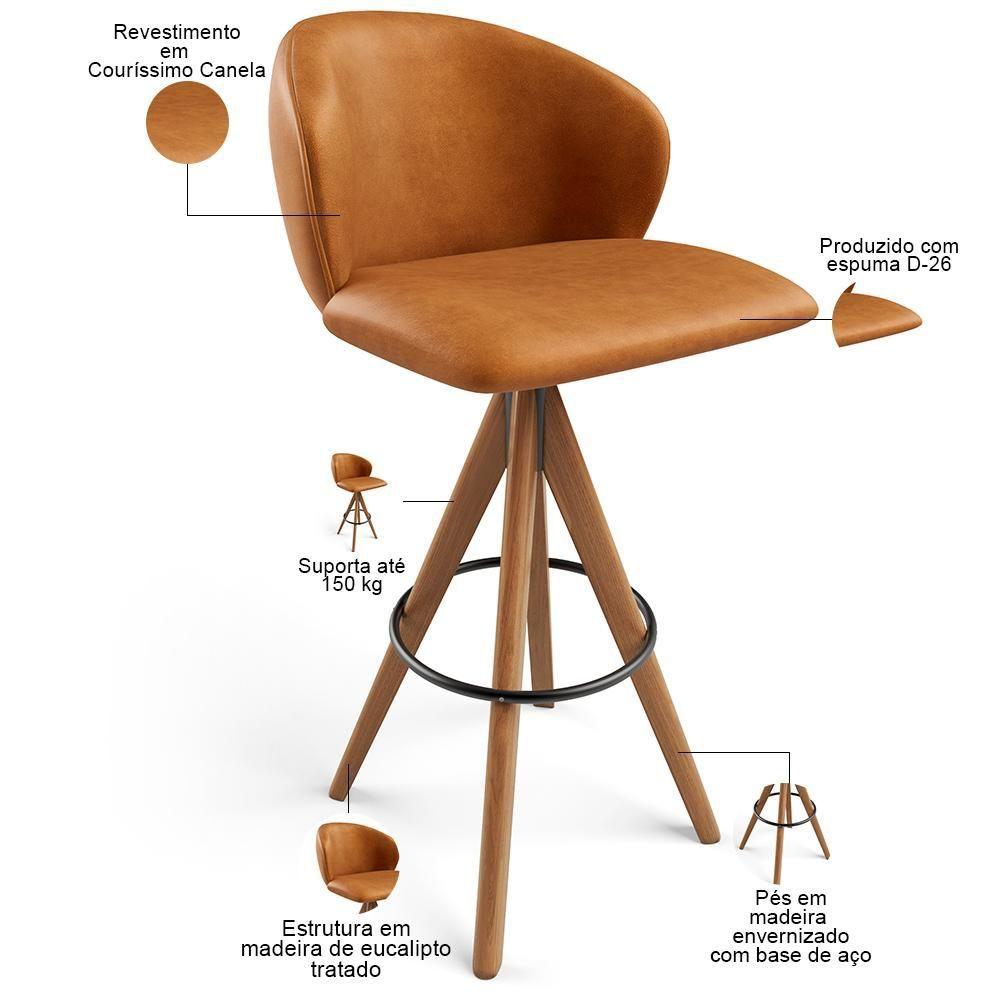 Kit 06 Banquetas Alta Bar Cozinha Sala De Jantar Bar Mia L02 Couríssimo Canela - Lyam Decor