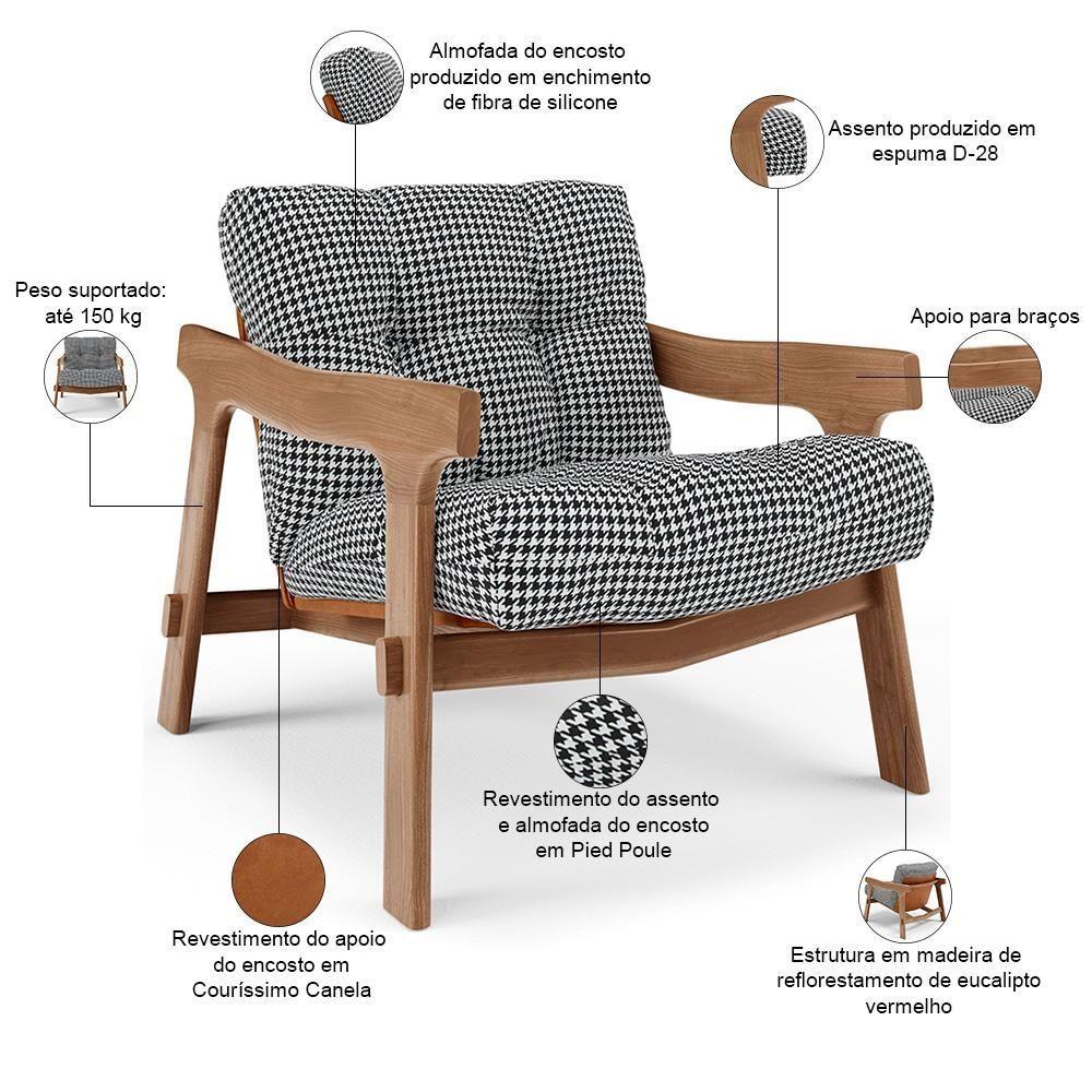 Kit 02 Poltronas Decorativa Fixa Para Sala Living Ikary L02 Canela Pied Poule - Lyam Decor