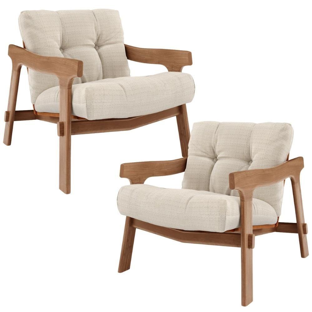 Kit 02 Poltronas Decorativa Fixa Para Sala Living Ikary L02 Canela Linho Palha - Lyam Decor