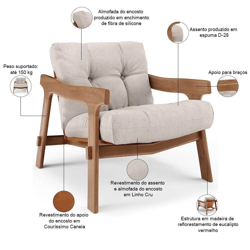 Kit 02 Poltronas Decorativa Fixa Para Sala Living Ikary L02 Canela Linho Cru - Lyam DecorO Kit 02 Poltronas Ikary é a escolha ideal para quem busca unir sofisticação e funcionalidade. Com seu design contemporâneo, ela transforma qualquer ambiente, seja na sala de estar, no quarto ou no escritório. Revestida com materiais de alta qualidade e sua estrutura de madeira de eucalipto vermelho, garante o conforto e estilo, além de proporcionar resistência e sustentabilidade. Leve elegância e praticidade para sua casa com a Poltrona Ikary. Um móvel que une design contemporâneo e durabilidade para transformar o seu ambiente!Dimensões do produto (A x L x P) 74 x 92 x 64 cmMedidas Internas: Altura do chão ao assento: 41 cm Altura do chão ao braço: 59cm- Por se tratar de estofado as medidas podem ter uma pequena variação de até 3 cm. - A tonalidade do produto real poderá ter ligeira variação devido o lote de tecidos. - A limpeza deve ser feita com pano levemente umedecido em água limpa, sem esfregar, não utilizar produtos abrasivos, desengordurantes, álcool ou solvente.Características: Estrutura em madeira de reflorestamento de eucalipto vermelho, proporcionando resistência e sustentabilidade. Possui apoio para os braços. Almofada do encosto produzida com enchimento de fibra de silicone, garantindo maciez. Assento confeccionado com espuma D-28. Revestimento do assento e da almofada do encosto em Linho na cor Cru. Apoio do encosto em Couríssimo na cor Canela, adicionando um detalhe elegante. Suporta até 150 kg.Observações importantes: - Produto para uso residencial em ambiente interno, não devendo ficar exposto diretamente ao sol, calor e umidade excessivos. - Pode haver alguma diferença de tonalidade entre a imagem e o produto real, por conta do tratamento de imagens e a calibração de cores do seu monitor. - As imagens são meramente ilustrativas, não acompanham objetos de decoração e eletrônicos. - Ao receber a mercadoria, o cliente deve verificar as condições da embalagem, caso haja alguma avaria não assine o comprovante de recebimento. - Montagem, desmontagem e outras instalações serão de responsabilidade do cliente. Não nos responsabilizamos, no ato da entrega, por subir escadas/elevadores ou pelo transporte por guincho em apartamentos. Eventuais despesas são de responsabilidade do comprador. - Confira as dimensões do produto e certifique-se de que passará normalmente por supostos elevadores, portas, escadas e/ou corredores de sua residência. ProductInstructions: Produto para uso em ambiente interno, nao devendo ficar exposto ao sol, calor e umidade excessivos. | ProductWeight: 50 kg | Color: Cru | ColorFamily: Cru | ColorSimple: Cru | ColorSupplier: Canela e Cru | Material: Estrutura em Madeira, Espuma, Revestimento Couríssimo e Linho | MaterialFamily: Madeira, Espuma | Model: Ikary | OriginCountry: Nacional | OriginState: PR | ProductContents: 02 Poltronas | SizeDescription: Altura: 100 cm x Largura: 85 cm x Profundidade: 100 cm | SupplierSimpleName: Kit 02 Poltronas Decorativa Fixa Para Sala Living Ikary L02 Canela Linho Cru - Lyam Decor | ProductLength: 100 cm | ProductWidth: 85 cm | ProductWarranty: 90 dias após o recebimento do produto | ProductHeight: 100 cm | Cor: Bege