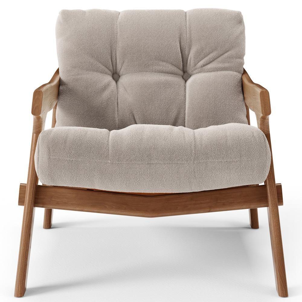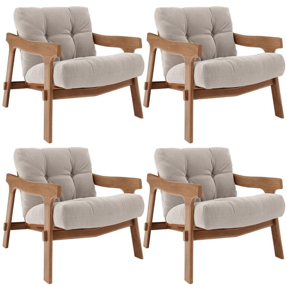 Kit 04 Poltronas Decorativa Fixa Para Sala Living Ikary L02 Canela Prime Bouclê Bege Escuro - Lyam Decor