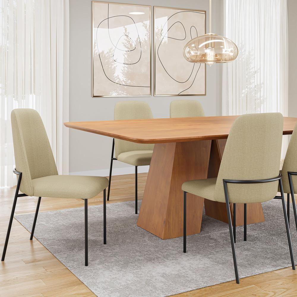 Kit 06 Cadeiras Decorativa Estofada Para Sala De Jantar Bella L02 Linho Bege Escuro - Lyam Decor