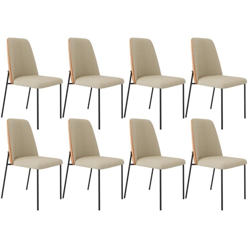 Kit 08 Cadeiras Decorativa Estofada Sala De Jantar Bella L02 Couríssimo Whisky Linho Bege - Lyam Decor