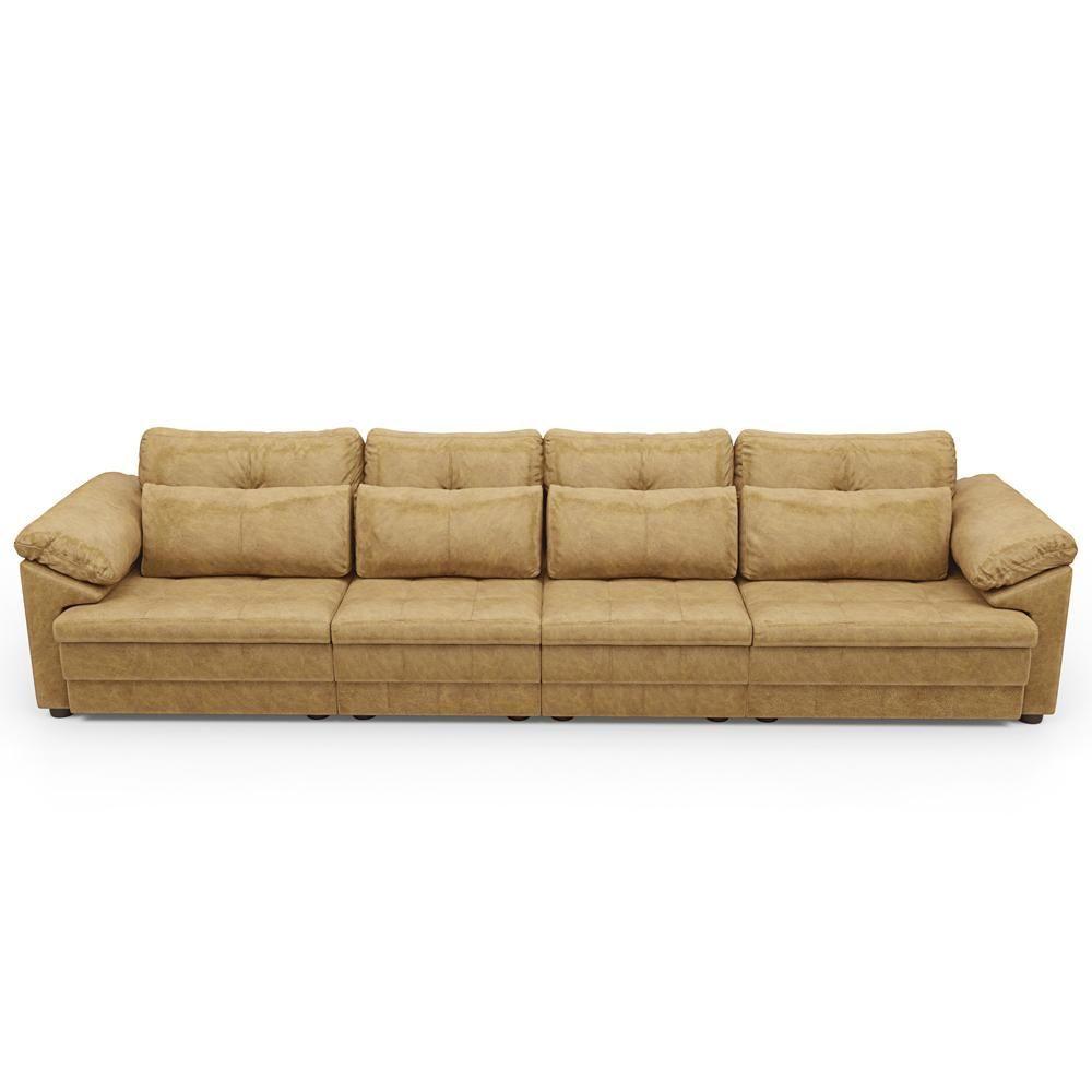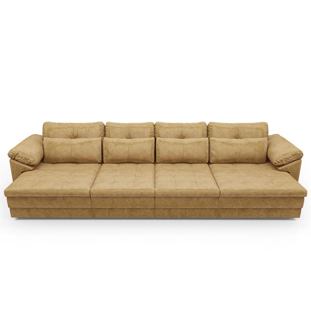 Sofá Retrátil Para Sala De Estar 4 Lugares 339cm Riza S03 Couro Soft Bege - Lyam Decor