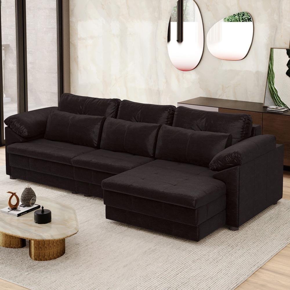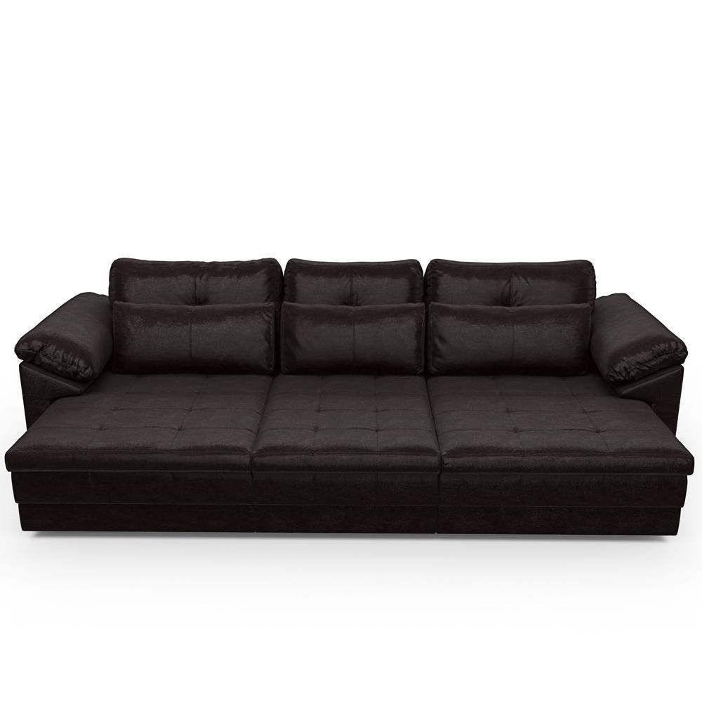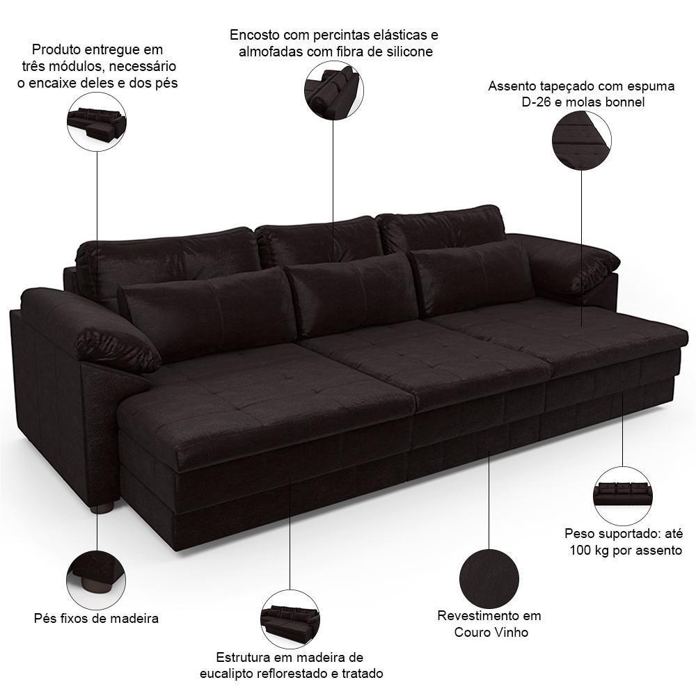 Sofá Retrátil Para Sala De Estar 4 Lugares 332cm Riza S03 Couro Vinho - Lyam Decor