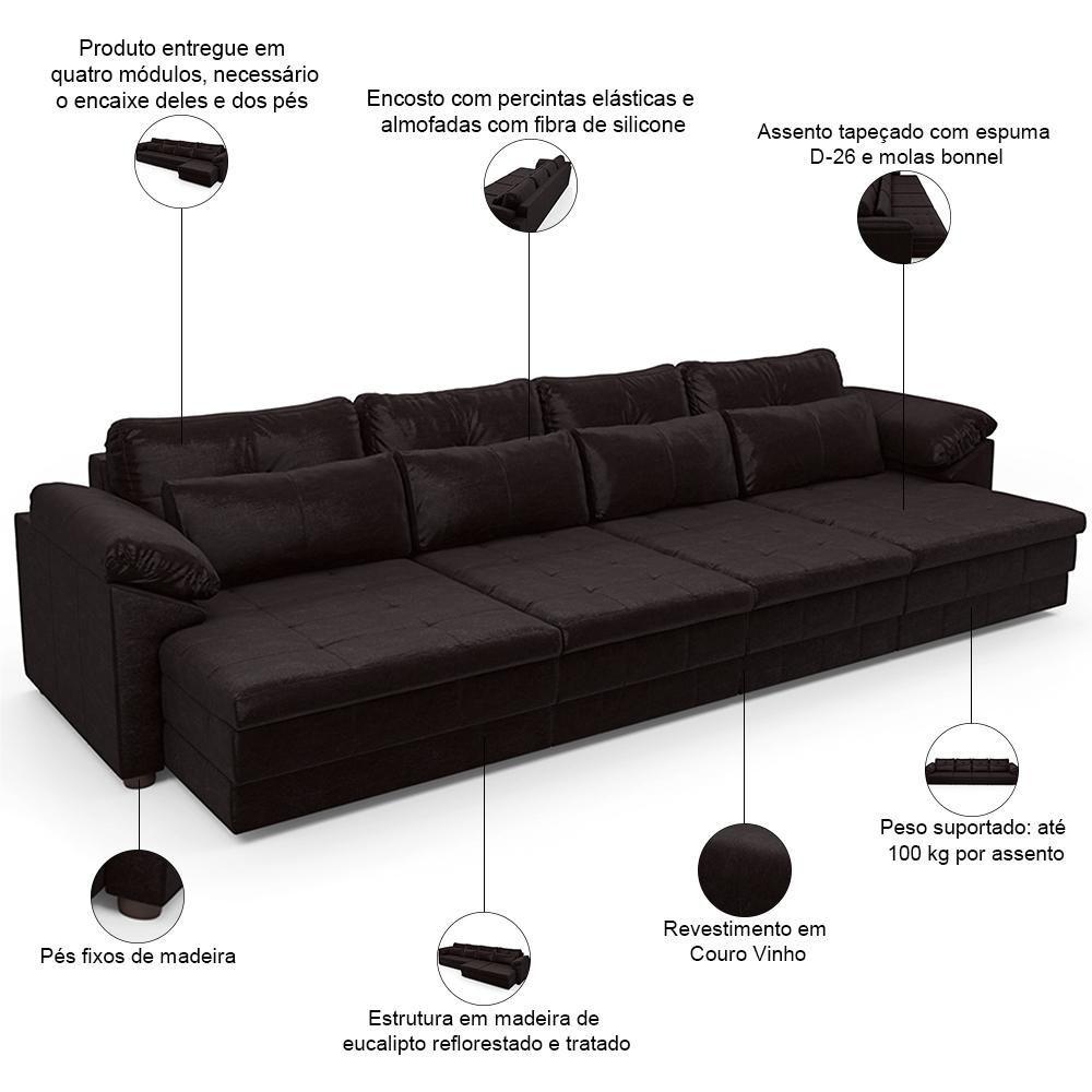 Sofá Retrátil Para Sala De Estar 5 Lugares 379cm Riza S03 Couro Vinho - Lyam Decor