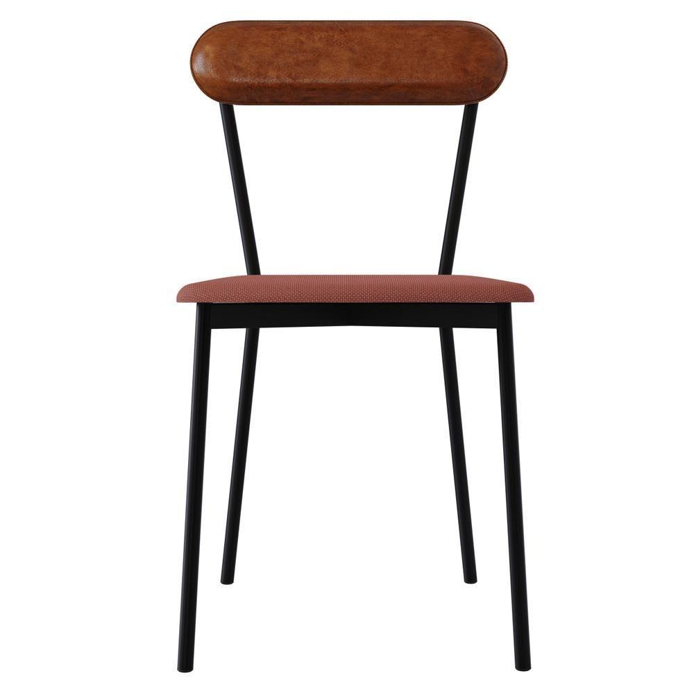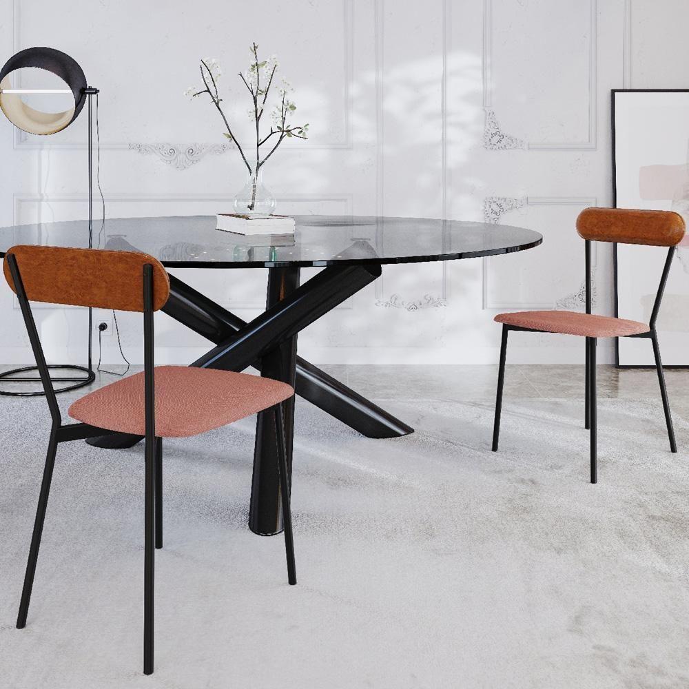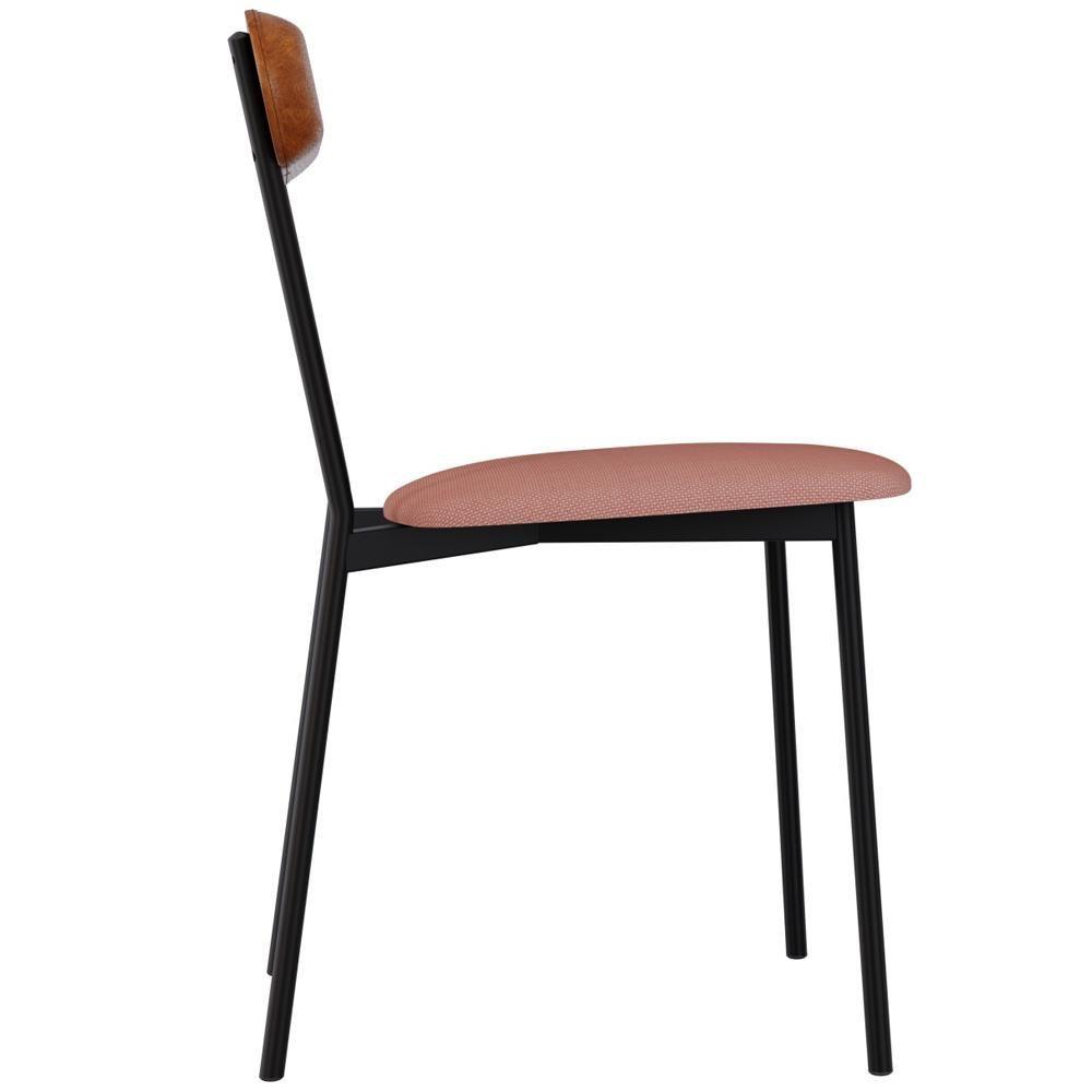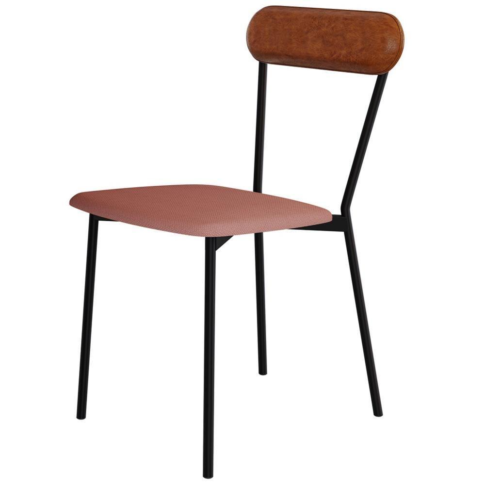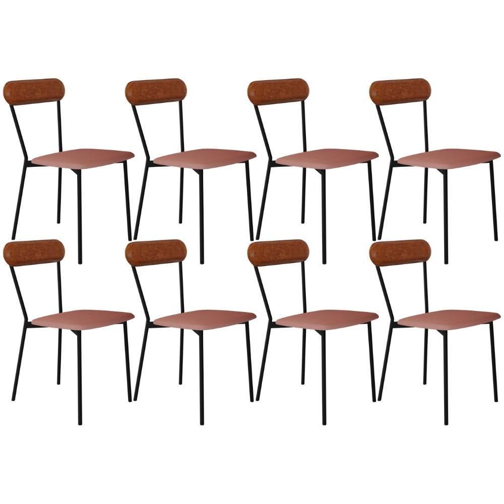 Kit 08 Cadeiras Estofada Para Sala De Jantar Liora Preto C01 Linho Rosê Courino Caramelo - Lyam Decor
