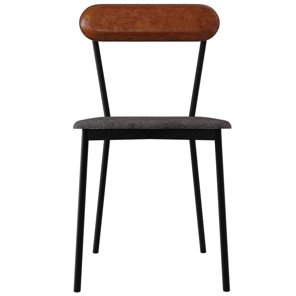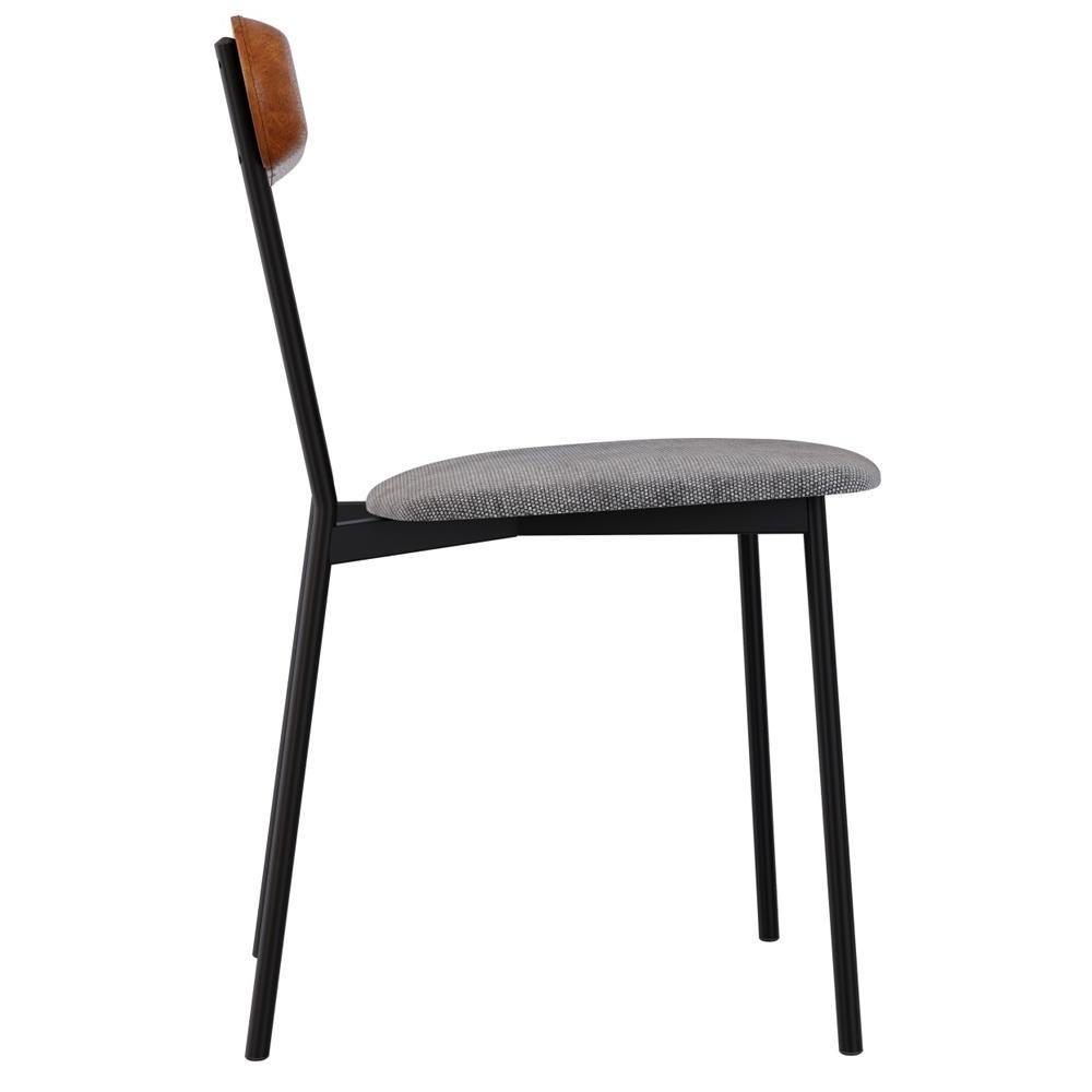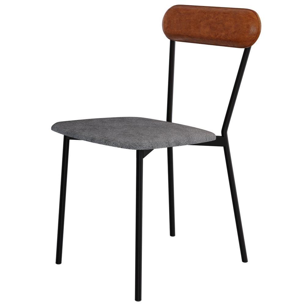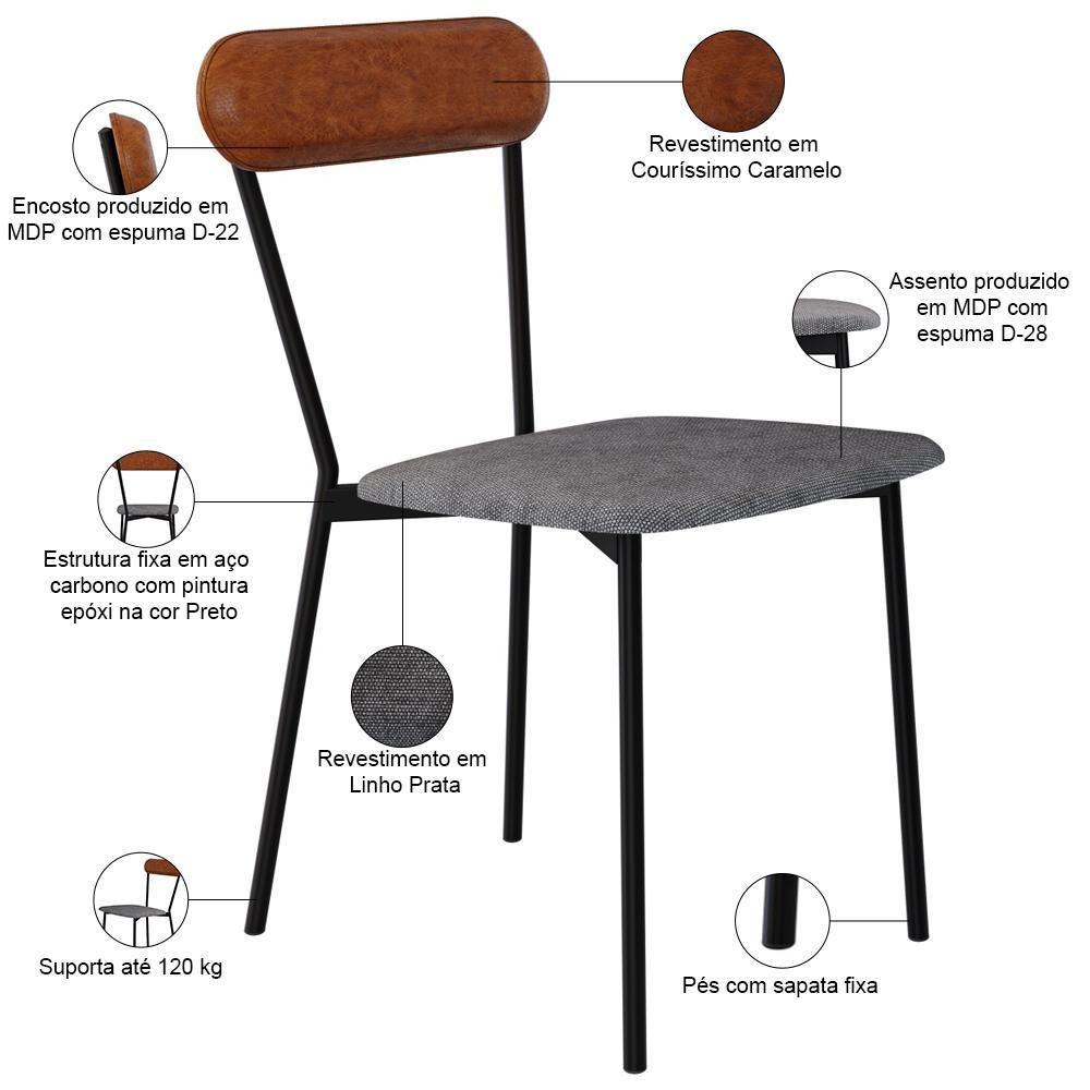 Kit 08 Cadeiras Estofada Para Sala De Jantar Liora Preto C01 Linho Prata Courino Caramelo - Lyam Decor
