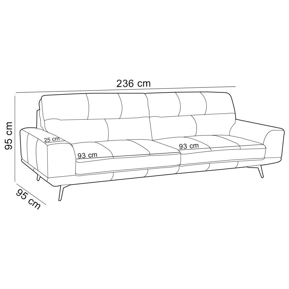 Sofá 3 Lugares Para Sala Living Industrial 236cm Cádis L06 Couro Marrom Escuro - Lyam DecorRevolucione sua sala de estar ou living com o Sofá 3 Lugares 236cm Cádis, da Lyam Decor: onde o industrial encontra o luxo!Se o seu espaço pede um toque de ousadia e conforto que impressiona, esse sofá living é a resposta. O design industrial combina a durabilidade do couro, com espuma de alta densidade e pés em aço para criar uma peça que é pura personalidade e sofisticação. Imagine relaxar após um dia intenso ou receber amigos em um sofá de couro que une resistência, estilo e aconchego como nenhum outro. Esse não é apenas um estofado - é a peça central que sua sala estava esperando. Garanta o seu Cádis agora e transforme seu living em um cenário de design e conforto! Dimensões do Produto (L x A x P) 236 x 95 x 95 cm Medidas internas Largura livre do assento: 93 cm Largura do braço: 25 cm Características: Estrutura em madeira de eucalipto tratada e aparelhada com reforços, cantoneiras e chapas em MDF. Revestimento em tecido Couro de alta qualidade na tonalidade Marrom Escuro. Encosto e almofadas fixos compostos por 100% fibra siliconada. Assento fixo composto por espuma D-26 e molas ensacadas. Percintas elásticas no assento para maior resistência e durabilidade. Braços compostos por espuma D-26. Sofá modelo bipartido. Pés em aço, estilo industrial. Peso suportado: Até 120 kg por assento. - Nunca sentar nos braços ou encosto do produto. - Por se tratar de estofado as medidas podem ter uma pequena variação de até 3 cm. - A tonalidade do produto real poderá ter ligeira variação devido o lote de tecidos. - Indicado para uso residencial, sua limpeza deve ser feita com pano levemente umedecido em água limpa, sem esfregar, não utilizar produtos abrasivos, desengordurantes, álcool ou solvente. Observações importantes: - Produto para uso residencial em ambiente interno, não devendo ficar exposto diretamente ao sol, calor e umidade excessivos. - Pode haver alguma diferença de tonalidade entre a imagem e o produto real, por conta do tratamento de imagens e a calibração de cores do seu monitor. - As imagens são meramente ilustrativas, não acompanham objetos de decoração e eletrônicos. - Ao receber a mercadoria, o cliente deve verificar as condições da embalagem, caso haja alguma não assine o de e com nossa para orientações. - Montagem, desmontagem e outras instalações serão de responsabilidade do cliente. Não nos responsabilizamos, no ato da , por subir escadas/elevadores ou pelo por guincho em apartamentos. Eventuais despesas são de responsabilidade do comprador. - Confira as dimensões do produto e certifique-se de que passará normalmente por supostos elevadores, portas, escadas e/ou corredores de sua residência. ColorSimple: Marrom Escuro | ColorSupplier: Marrom Escuro | Color: Marrom Escuro | Estilo: Moderno | Fabricante: Lyam Decor | Largura: 236 cm | Material: Madeira de Eucalipto, Espuma D-26 | MaterialFamily: Eucalipto, Espuma | OriginCountry: | OriginState: PR | ProductContents: 01 Sofá | Profundidade: 95 cm | SupplierSimpleName: Sofá 3 Lugares Para Sala Living Industrial 236cm Cádis L06 Couro Marrom Escuro - Lyam Decor | ProductLength: 95 cm | Altura: 95 cm | ColorFamily: Marrom Escuro | Cor: Marrom Escuro