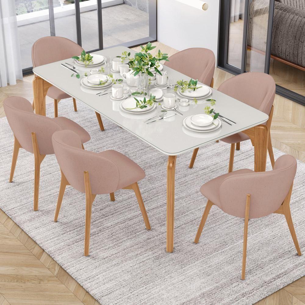 Kit 03 Cadeiras De Jantar E Estar Living Estofada Mia L02 Linho Rosê - Lyam Decor O Kit 03 Cadeiras de Jantar e Estar Living Estofada Mia, da Lyam Decor, é a combinação perfeita de design orgânico, conforto e modernidade, expressos em cada detalhe, desde as linhas curvas do assento e encosto até os pés de madeira maciça envernizada. Em outras palavras, essa cadeira estofada é ideal para complementar sua sala de jantar ou estar com elegância e estilo. Além disso, a tapeçaria feita com espuma D-26 oferece um conforto excepcional, permitindo que você desfrute de momentos prazerosos durante suas refeições ou conversas com amigos e familiares. Para completar, essa cadeira de jantar moderna é perfeita para quem busca uma sala de jantar contemporânea, já que seu design único traz uma sensação de beleza e sofisticação ao ambiente e, ainda, harmoniza facilmente com diversos estilos de mesa de jantar. Ah, mas além da sala de jantar, você também pode aproveitá-la como assento extra na sala de estar, recepção, escritório e até mesmo no quarto, ou seja, uma cadeira de madeira versátil como você sempre quis. Então, que tal garantir bem-estar e beleza em um único produto? Adquira agora a Cadeira Mia e transforme seu ambiente em um espaço acolhedor, elegante e cheio de personalidade.Dimensões do produto (L x A x P) 56 cm x 81 cm x 54 cmMedidas internas Altura do assento ao chão: 47 cm Profundidade do assento: 43 cm Altura do encosto: 38 cm Peso aproximado: 8 kgCaracterísticas: Estrutura de Madeira de Eucalipto tratado de reserva legalizada, correto ecologicamente. Revestimento em Linho na cor Rosê. Assento e encosto com espuma D-26. Peso máximo suportado por cadeira até 150 kg. Pés em madeira envernizados. Design orgânico, com linhas curvas. Produto entregue montado.- Por se tratar de estofado as medidas podem ter uma pequena variação de até 3 cm. - A tonalidade do produto real poderá ter ligeira variação devido o lote de tecidos. - A limpeza deve ser feita com pano levemente umedecido em água limpa, sem esfregar, não utilizar produtos abrasivos, desengordurantes, álcool ou solvente.Observações importantes: - Produto para uso residencial em ambiente interno, não devendo ficar exposto diretamente ao sol, calor e umidade excessivos. - Pode haver alguma diferença de tonalidade entre a imagem e o produto real, por conta do tratamento de imagens e a calibração de cores do seu monitor. - As imagens são meramente ilustrativas, não acompanham objetos de decoração e eletrônicos. - Ao receber a mercadoria, o cliente deve verificar as condições da embalagem, caso haja alguma não assine o de . - Montagem, desmontagem e outras instalações serão de responsabilidade do cliente. Não nos responsabilizamos, no ato da , por subir escadas/elevadores ou pelo por guincho em apartamentos. Eventuais despesas são de responsabilidade do comprador. - Confira as dimensões do produto e certifique-se de que passará normalmente por supostos elevadores, portas, escadas e/ou corredores de sua residência. Material: Estrutura em Madeira, Revestimento em Linho e espuma | MaterialFamily: Madeira, linho e espuma | ProductContents: 03 Cadeiras | SizeDescription: Altura: 81 cm x Largura: 56 cm x Profundidade: 54 cm | Model: Mia | ProductHeight: 81 cm | ProductInstructions: Produto para uso em ambiente interno, nao devendo ficar exposto ao sol, calor e umidade excessivos. | ProductWeight: 21 kg | ColorFamily: Rosa | OriginCountry: | ProductWarranty: 90 dias após o do produto | OriginState: PR | ProductWidth: 56 cm | ColorSupplier: Rosê | ColorSimple: Rosa | ProductLength: 54 cm | Color: Rosa | SupplierSimpleName: Kit 03 Cadeiras de Jantar e Estar Living Estofada Mia L02 Linho Rosê - Lyam Decor