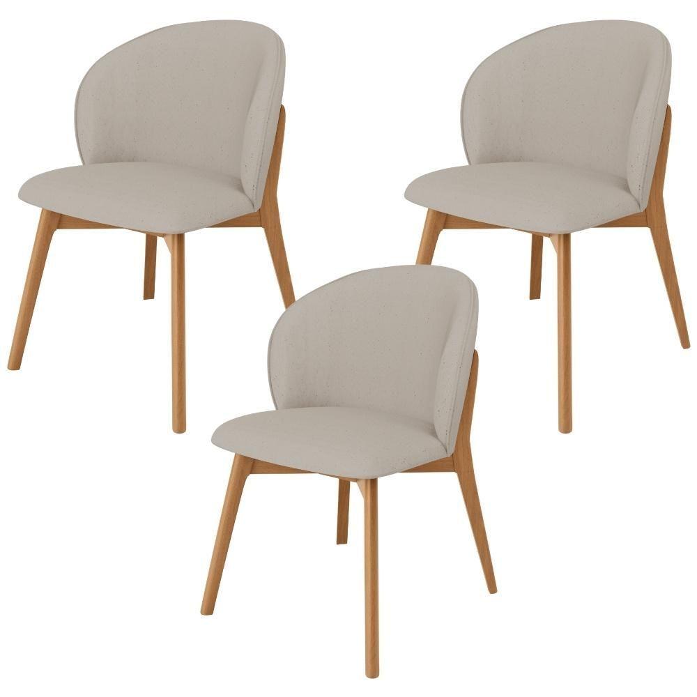 Kit 03 Cadeiras De Jantar E Estar Living Estofada Mia L02 Linho Bege - Lyam Decor