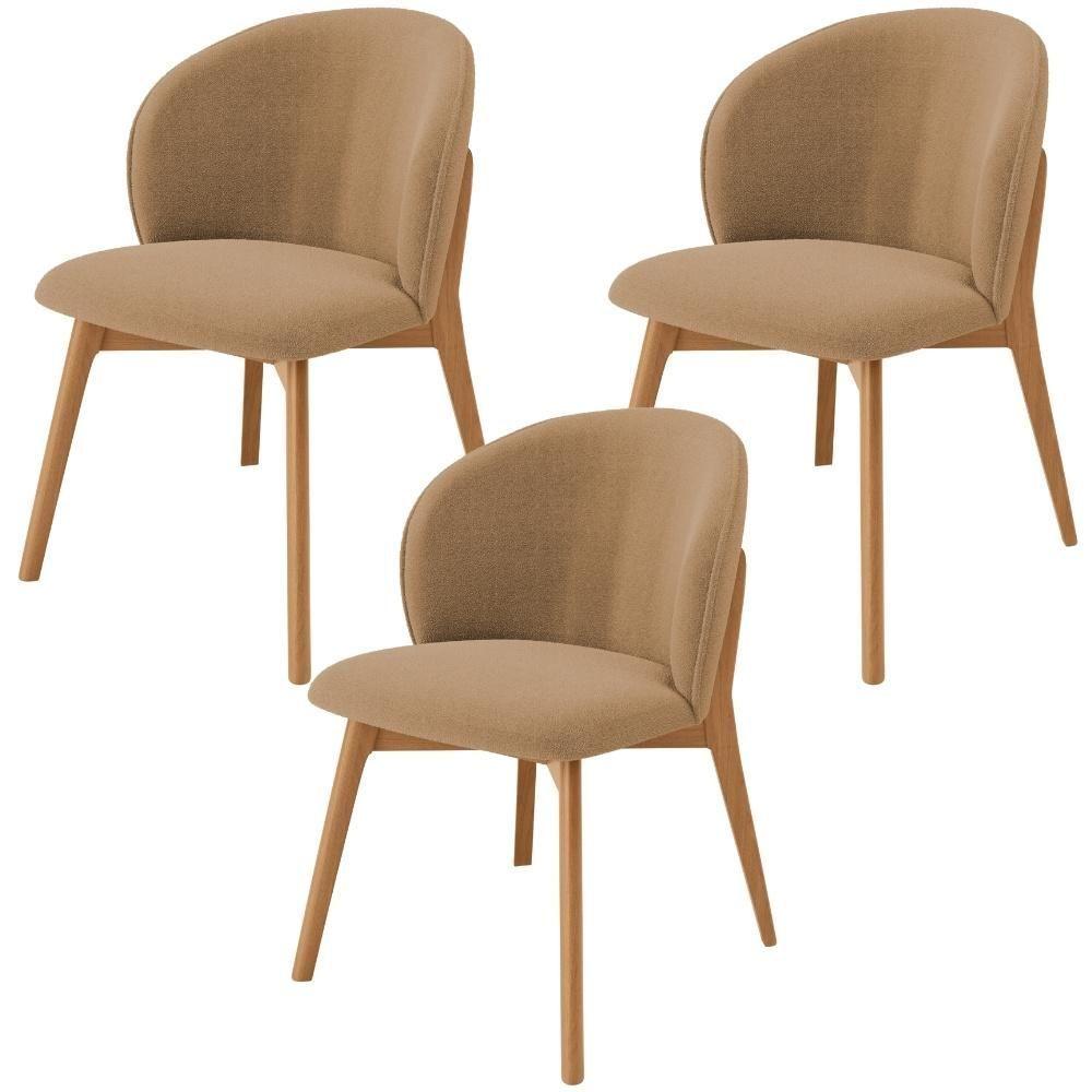Kit 03 Cadeiras De Jantar E Estar Living Estofada Mia L02 Bouclê Mostarda - Lyam Decor