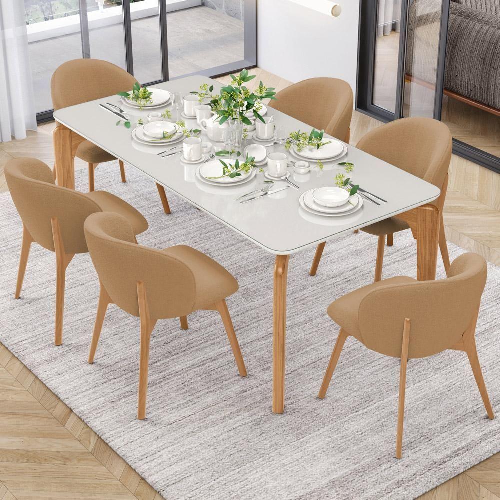 Kit 03 Cadeiras De Jantar E Estar Living Estofada Mia L02 Bouclê Mostarda - Lyam Decor O Kit 03 Cadeiras de Jantar e Estar Living Estofada Mia, da Lyam Decor, é a combinação perfeita de design orgânico, conforto e modernidade, expressos em cada detalhe, desde as linhas curvas do assento e encosto até os pés de madeira maciça envernizada. Em outras palavras, essa cadeira estofada é ideal para complementar sua sala de jantar ou estar com elegância e estilo. Além disso, a tapeçaria feita com espuma D-26 oferece um conforto excepcional, permitindo que você desfrute de momentos prazerosos durante suas refeições ou conversas com amigos e familiares. Para completar, essa cadeira de jantar moderna é perfeita para quem busca uma sala de jantar contemporânea, já que seu design único traz uma sensação de beleza e sofisticação ao ambiente e, ainda, harmoniza facilmente com diversos estilos de mesa de jantar. Ah, mas além da sala de jantar, você também pode aproveitá-la como assento extra na sala de estar, recepção, escritório e até mesmo no quarto, ou seja, uma cadeira de madeira versátil como você sempre quis. Então, que tal garantir bem-estar e beleza em um único produto? Adquira agora a Cadeira Mia e transforme seu ambiente em um espaço acolhedor, elegante e cheio de personalidade.Dimensões do produto (L x A x P) 56 cm x 81 cm x 54 cmMedidas internas Altura do assento ao chão: 47 cm Profundidade do assento: 43 cm Altura do encosto: 38 cm Peso aproximado: 8 kgCaracterísticas: Estrutura de Madeira de Eucalipto tratado de reserva legalizada, correto ecologicamente. Revestimento em Bouclê na cor Mostarda. Assento e encosto com espuma D-26. Peso máximo suportado por cadeira até 150 kg. Pés em madeira envernizados. Design orgânico, com linhas curvas. Produto entregue montado.- Por se tratar de estofado as medidas podem ter uma pequena variação de até 3 cm. - A tonalidade do produto real poderá ter ligeira variação devido o lote de tecidos. - A limpeza deve ser feita com pano levemente umedecido em água limpa, sem esfregar, não utilizar produtos abrasivos, desengordurantes, álcool ou solvente.Observações importantes: - Produto para uso residencial em ambiente interno, não devendo ficar exposto diretamente ao sol, calor e umidade excessivos. - Pode haver alguma diferença de tonalidade entre a imagem e o produto real, por conta do tratamento de imagens e a calibração de cores do seu monitor. - As imagens são meramente ilustrativas, não acompanham objetos de decoração e eletrônicos. - Ao receber a mercadoria, o cliente deve verificar as condições da embalagem, caso haja alguma não assine o de . - Montagem, desmontagem e outras instalações serão de responsabilidade do cliente. Não nos responsabilizamos, no ato da , por subir escadas/elevadores ou pelo por guincho em apartamentos. Eventuais despesas são de responsabilidade do comprador. - Confira as dimensões do produto e certifique-se de que passará normalmente por supostos elevadores, portas, escadas e/ou corredores de sua residência. ColorFamily: Amarelo | ProductContents: 03 Cadeiras | OriginCountry: | ProductWidth: 56 cm | SupplierSimpleName: Kit 03 Cadeiras de Jantar e Estar Living Estofada Mia L02 Bouclê Mostarda - Lyam Decor | Color: Amarelo | ColorSimple: Amarelo | ProductLength: 54 cm | OriginState: PR | ColorSupplier: Mostarda | Model: Mia | MaterialFamily: Madeira, Bouclê e espuma | ProductHeight: 81 cm | Material: Estrutura em Madeira, Revestimento em Bouclê e espuma | SizeDescription: Altura: 81 cm x Largura: 56 cm x Profundidade: 54 cm | ProductWarranty: 90 dias após o do produto | ProductWeight: 21 kg | ProductInstructions: Produto para uso em ambiente interno, nao devendo ficar exposto ao sol, calor e umidade excessivos.