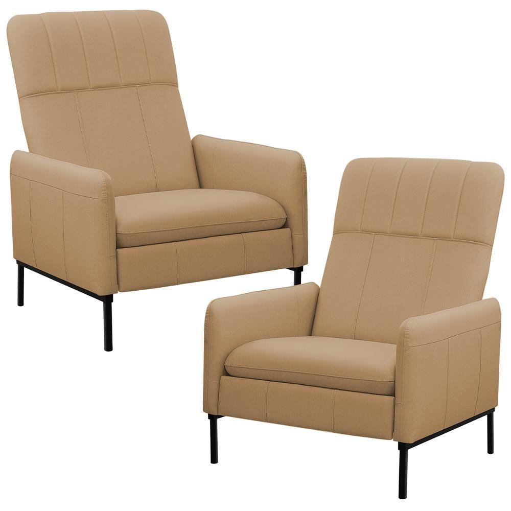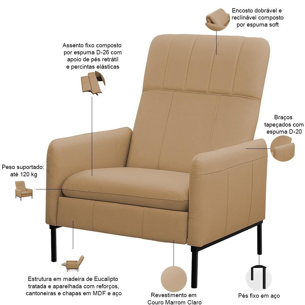 Kit 2 Poltronas Decorativa Fixa Retrátil Reclinável Lutor L06 Couro Marrom Claro - Lyam Decor