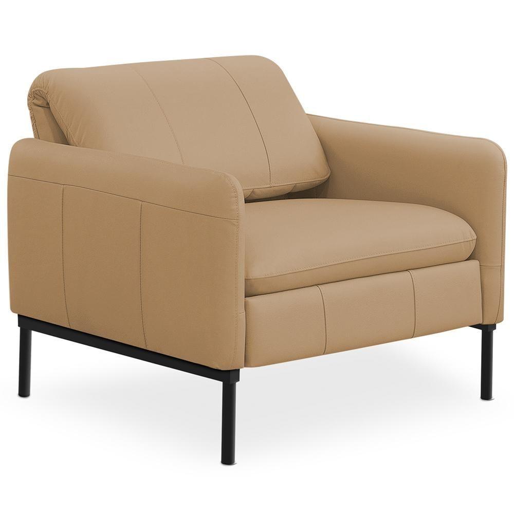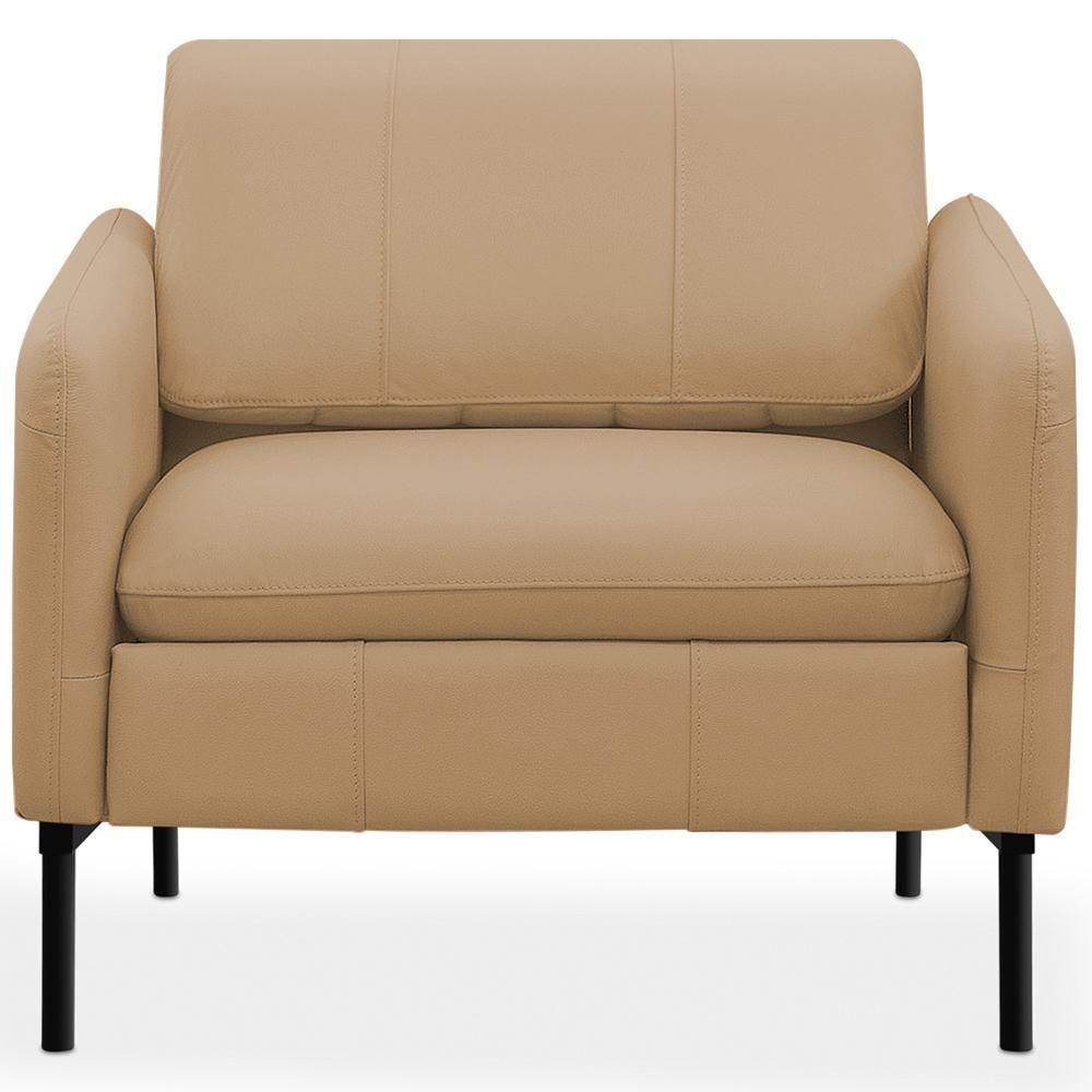 Kit 2 Poltronas Decorativa Fixa Retrátil Reclinável Lutor L06 Couro Marrom Claro - Lyam DecorConheça o Kit 2 Poltronas Fixas Lutor, da Lyam Decor, o estofado que vai transformar qualquer ambiente da sua casa! Com um design moderno e elegante, essa peça é perfeita para compor sua sala de estar, quarto ou até mesmo aquele cantinho especial de leitura. Seu encosto dobrável e reclinável proporciona o conforto que você precisa, enquanto o apoio de pés retrátil garante momentos de relaxamento absoluto. Revestida em couro de alta qualidade e tapeçaria com espuma de alta densidade, essa poltrona reclinável não é apenas um convite ao descanso, mas também uma adição sofisticada à sua decoração. Os pés metálicos conferem um toque contemporâneo e robustez à peça, assegurando durabilidade e estilo. Então, invista em conforto e beleza com essa poltrona decorativa ? um verdadeiro destaque para diversos ambientes da sua casa! Dimensões da Poltrona (L x A x P) 80 x 72 x 78 cmMedidas Internas: Altura do encosto: 35 cm Altura do encosto aberto: 70 cm Largura do encosto: 62 cm Profundidade do assento: 43 cm Largura do assento: 62 cm Altura do chão ao assento: 52 cm Profundidade total aberta: 142 cm Altura total aberta: 107 cmCaracterísticas: Estrutura em madeira de eucalipto tratada e aparelhada com reforços, cantoneiras e chapas em MDF e aço. Revestimento em tecido Couro de alta qualidade na tonalidade Marrom-Claro. Encosto dobrável e reclinável composto por espuma soft. Assento fixo composto por espuma D-26 com apoio de pés retrátil. Percintas elásticas para maior resistência e durabilidade. Braços tapeçados com espuma D-20. Pés fixo em aço. Peso suportado: Até 120 kg.- Nunca sentar nos braços ou encosto do produto. - Por se tratar de estofado as medidas podem ter uma pequena variação de até 3 cm. - A tonalidade do produto real poderá ter ligeira variação devido o lote de tecidos. - Indicado para uso residencial, sua limpeza deve ser feita com pano levemente umedecido em água limpa, sem esfregar, não utilizar produtos abrasivos, desengordurantes, álcool ou solvente.Observações importantes: - Produto para uso residencial em ambiente interno, não devendo ficar exposto diretamente ao sol, calor e umidade excessivos. - Pode haver alguma diferença de tonalidade entre a imagem e o produto real, por conta do tratamento de imagens e a calibração de cores do seu monitor. - As imagens são meramente ilustrativas, não acompanham objetos de decoração e eletrônicos. - Ao receber a mercadoria, o cliente deve verificar as condições da embalagem, caso haja alguma avaria não assine o comprovante de recebimento e entre em contato com nossa loja para orientações. - Montagem, desmontagem e outras instalações serão de responsabilidade do cliente. Não nos responsabilizamos, no ato da entrega, por subir escadas/elevadores ou pelo transporte por guincho em apartamentos. Eventuais despesas são de responsabilidade do comprador. - Confira as dimensões do produto e certifique-se de que passará normalmente por supostos elevadores, portas, escadas e/ou corredores de sua residência. - Para mais informações, acesse nossa Central de Atendimento. NA