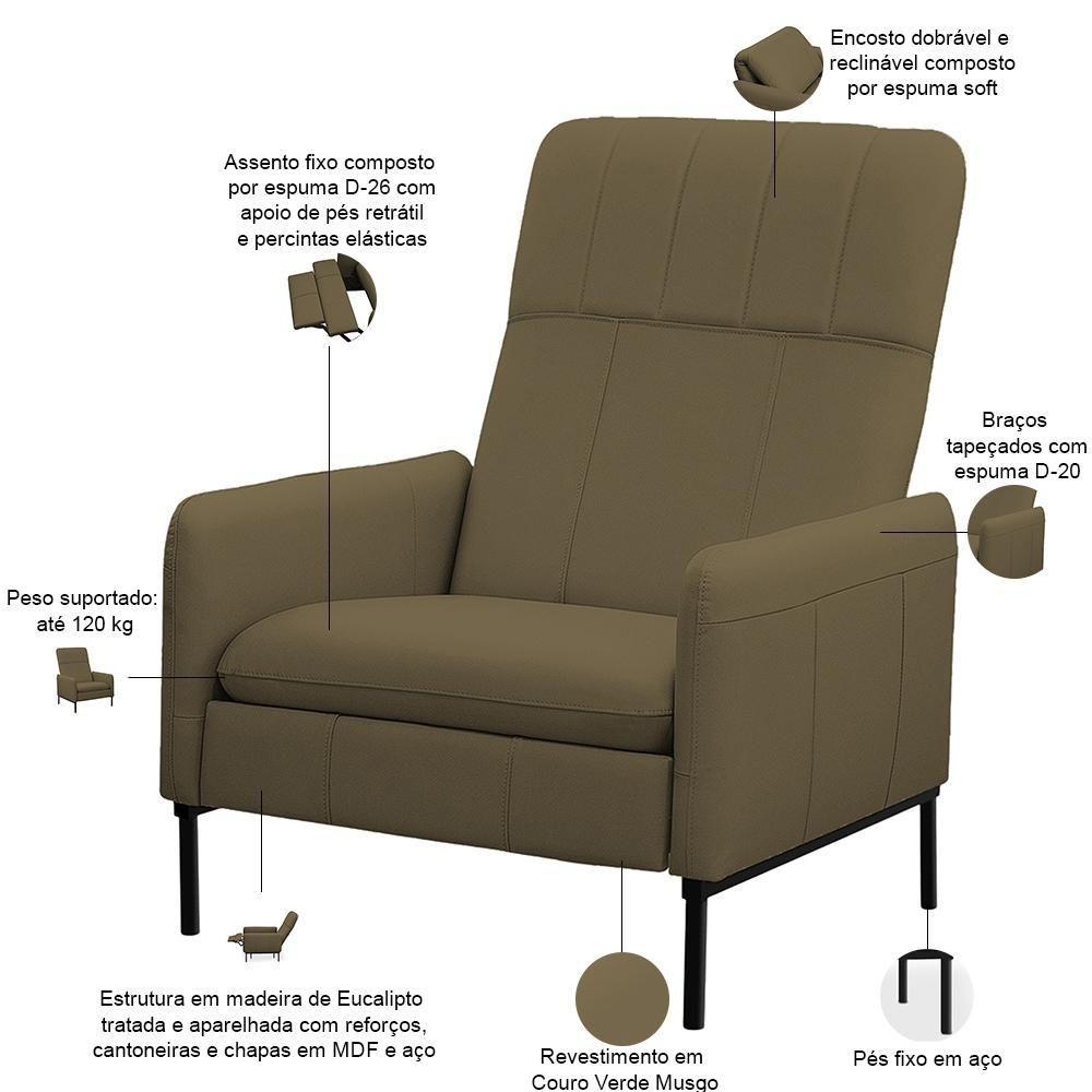 Kit 2 Poltronas Decorativa Fixa Retrátil Reclinável Lutor L06 Couro Verde Musgo - Lyam Decor