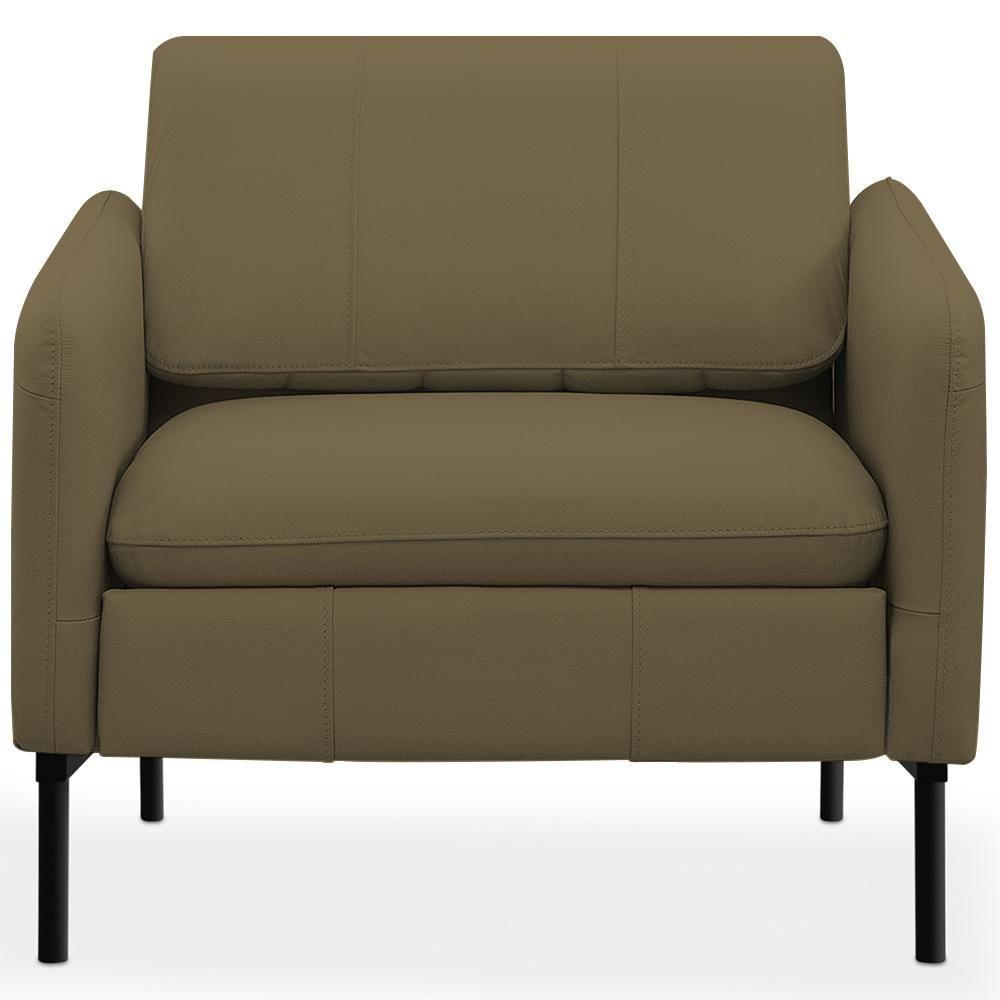Kit 2 Poltronas Decorativa Fixa Retrátil Reclinável Lutor L06 Couro Verde Musgo - Lyam DecorConheça o Kit 2 Poltronas Fixas Lutor, da Lyam Decor, o estofado que vai transformar qualquer ambiente da sua casa! Com um design moderno e elegante, essa peça é perfeita para compor sua sala de estar, quarto ou até mesmo aquele cantinho especial de leitura. Seu encosto dobrável e reclinável proporciona o conforto que você precisa, enquanto o apoio de pés retrátil garante momentos de relaxamento absoluto. Revestida em couro de alta qualidade e tapeçaria com espuma de alta densidade, essa poltrona reclinável não é apenas um convite ao descanso, mas também uma adição sofisticada à sua decoração. Os pés metálicos conferem um toque contemporâneo e robustez à peça, assegurando durabilidade e estilo. Então, invista em conforto e beleza com essa poltrona decorativa ? um verdadeiro destaque para diversos ambientes da sua casa! Dimensões da Poltrona (L x A x P) 80 x 72 x 78 cmMedidas Internas: Altura do encosto: 35 cm Altura do encosto aberto: 70 cm Largura do encosto: 62 cm Profundidade do assento: 43 cm Largura do assento: 62 cm Altura do chão ao assento: 52 cm Profundidade total aberta: 142 cm Altura total aberta: 107 cmCaracterísticas: Estrutura em madeira de eucalipto tratada e aparelhada com reforços, cantoneiras e chapas em MDF e aço. Revestimento em tecido Couro de alta qualidade na tonalidade Verde Musgo. Encosto dobrável e reclinável composto por espuma soft. Assento fixo composto por espuma D-26 com apoio de pés retrátil. Percintas elásticas para maior resistência e durabilidade. Braços tapeçados com espuma D-20. Pés fixo em aço. Peso suportado: Até 120 kg.- Nunca sentar nos braços ou encosto do produto. - Por se tratar de estofado as medidas podem ter uma pequena variação de até 3 cm. - A tonalidade do produto real poderá ter ligeira variação devido o lote de tecidos. - Indicado para uso residencial, sua limpeza deve ser feita com pano levemente umedecido em água limpa, sem esfregar, não utilizar produtos abrasivos, desengordurantes, álcool ou solvente.Observações importantes: - Produto para uso residencial em ambiente interno, não devendo ficar exposto diretamente ao sol, calor e umidade excessivos. - Pode haver alguma diferença de tonalidade entre a imagem e o produto real, por conta do tratamento de imagens e a calibração de cores do seu monitor. - As imagens são meramente ilustrativas, não acompanham objetos de decoração e eletrônicos. - Ao receber a mercadoria, o cliente deve verificar as condições da embalagem, caso haja alguma avaria não assine o comprovante de recebimento e entre em contato com nossa loja para orientações. - Montagem, desmontagem e outras instalações serão de responsabilidade do cliente. Não nos responsabilizamos, no ato da entrega, por subir escadas/elevadores ou pelo transporte por guincho em apartamentos. Eventuais despesas são de responsabilidade do comprador. - Confira as dimensões do produto e certifique-se de que passará normalmente por supostos elevadores, portas, escadas e/ou corredores de sua residência. - Para mais informações, acesse nossa Central de Atendimento. NA