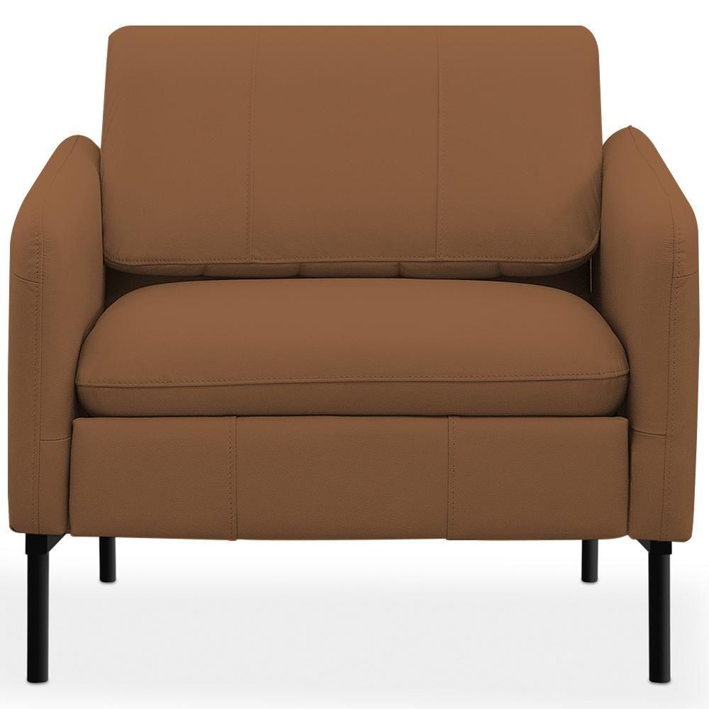 Kit 2 Poltronas Decorativa Fixa Retrátil Reclinável Lutor L06 Couro Caramelo - Lyam DecorConheça o Kit 2 Poltronas Fixas Lutor, da Lyam Decor, o estofado que vai transformar qualquer ambiente da sua casa! Com um design moderno e elegante, essa peça é perfeita para compor sua sala de estar, quarto ou até mesmo aquele cantinho especial de leitura. Seu encosto dobrável e reclinável proporciona o conforto que você precisa, enquanto o apoio de pés retrátil garante momentos de relaxamento absoluto. Revestida em couro de alta qualidade e tapeçaria com espuma de alta densidade, essa poltrona reclinável não é apenas um convite ao descanso, mas também uma adição sofisticada à sua decoração. Os pés metálicos conferem um toque contemporâneo e robustez à peça, assegurando durabilidade e estilo. Então, invista em conforto e beleza com essa poltrona decorativa ? um verdadeiro destaque para diversos ambientes da sua casa! Dimensões da Poltrona (L x A x P) 80 x 72 x 78 cmMedidas Internas: Altura do encosto: 35 cm Altura do encosto aberto: 70 cm Largura do encosto: 62 cm Profundidade do assento: 43 cm Largura do assento: 62 cm Altura do chão ao assento: 52 cm Profundidade total aberta: 142 cm Altura total aberta: 107 cmCaracterísticas: Estrutura em madeira de eucalipto tratada e aparelhada com reforços, cantoneiras e chapas em MDF e aço. Revestimento em tecido Couro de alta qualidade na tonalidade Caramelo. Assento fixo composto por espuma D-26 com apoio de pés retrátil. Percintas elásticas para maior resistência e durabilidade. Braços tapeçados com espuma D-20. Pés fixo em aço. Peso suportado: Até 120 kg.- Nunca sentar nos braços ou encosto do produto. - Por se tratar de estofado as medidas podem ter uma pequena variação de até 3 cm. - A tonalidade do produto real poderá ter ligeira variação devido o lote de tecidos. - Indicado para uso residencial, sua limpeza deve ser feita com pano levemente umedecido em água limpa, sem esfregar, não utilizar produtos abrasivos, desengordurantes, álcool ou solvente.Observações importantes: - Produto para uso residencial em ambiente interno, não devendo ficar exposto diretamente ao sol, calor e umidade excessivos. - Pode haver alguma diferença de tonalidade entre a imagem e o produto real, por conta do tratamento de imagens e a calibração de cores do seu monitor. - As imagens são meramente ilustrativas, não acompanham objetos de decoração e eletrônicos. - Ao receber a mercadoria, o cliente deve verificar as condições da embalagem, caso haja alguma avaria não assine o comprovante de recebimento e entre em contato com nossa loja para orientações. - Montagem, desmontagem e outras instalações serão de responsabilidade do cliente. Não nos responsabilizamos, no ato da entrega, por subir escadas/elevadores ou pelo transporte por guincho em apartamentos. Eventuais despesas são de responsabilidade do comprador. - Confira as dimensões do produto e certifique-se de que passará normalmente por supostos elevadores, portas, escadas e/ou corredores de sua residência. - Para mais informações, acesse nossa Central de Atendimento. NA