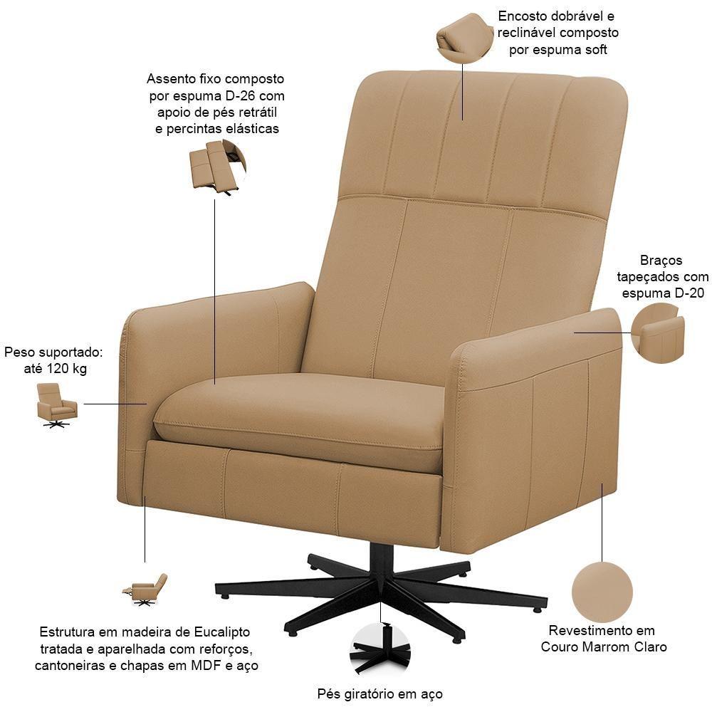Kit 2 Poltronas Decorativa Giratória Retrátil Reclinável Lutor L06 Couro Marrom Claro - Lyam Decor