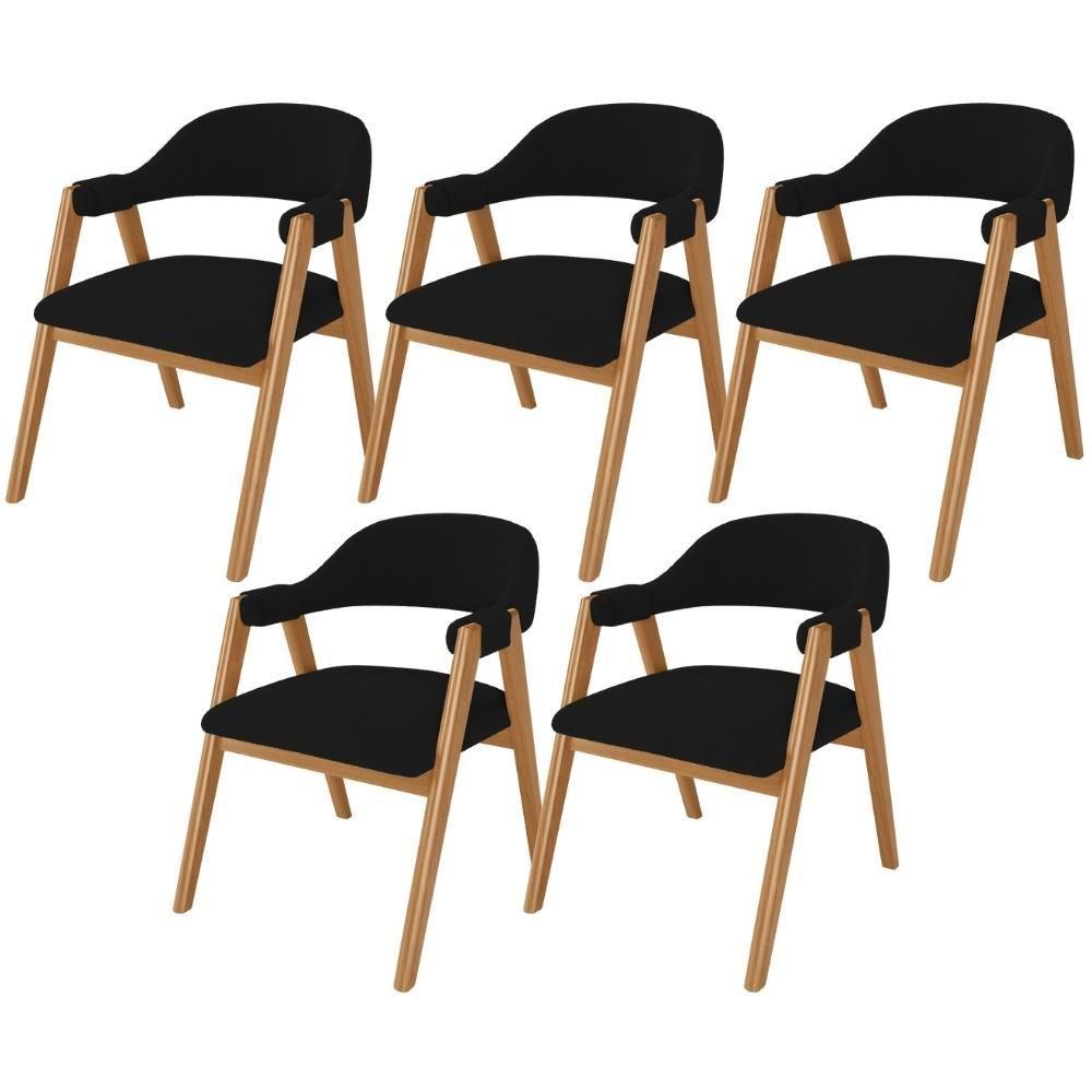 Kit 05 Cadeiras De Jantar E Estar Living Estofada Nadja L02 Bouclê Preto - Lyam Decor