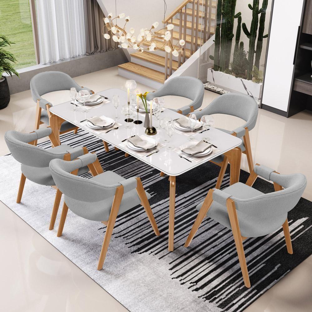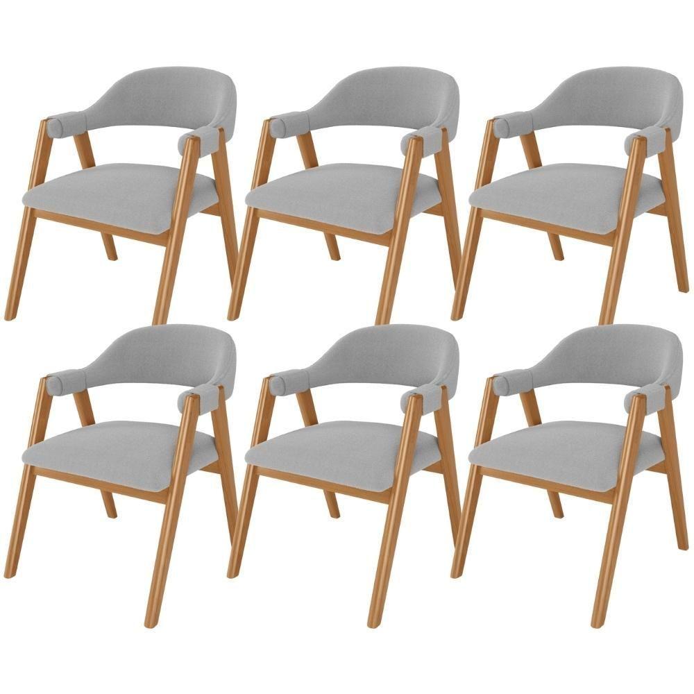 Kit 06 Cadeiras De Jantar E Estar Living Estofada Nadja L02 Bouclê Cinza - Lyam Decor