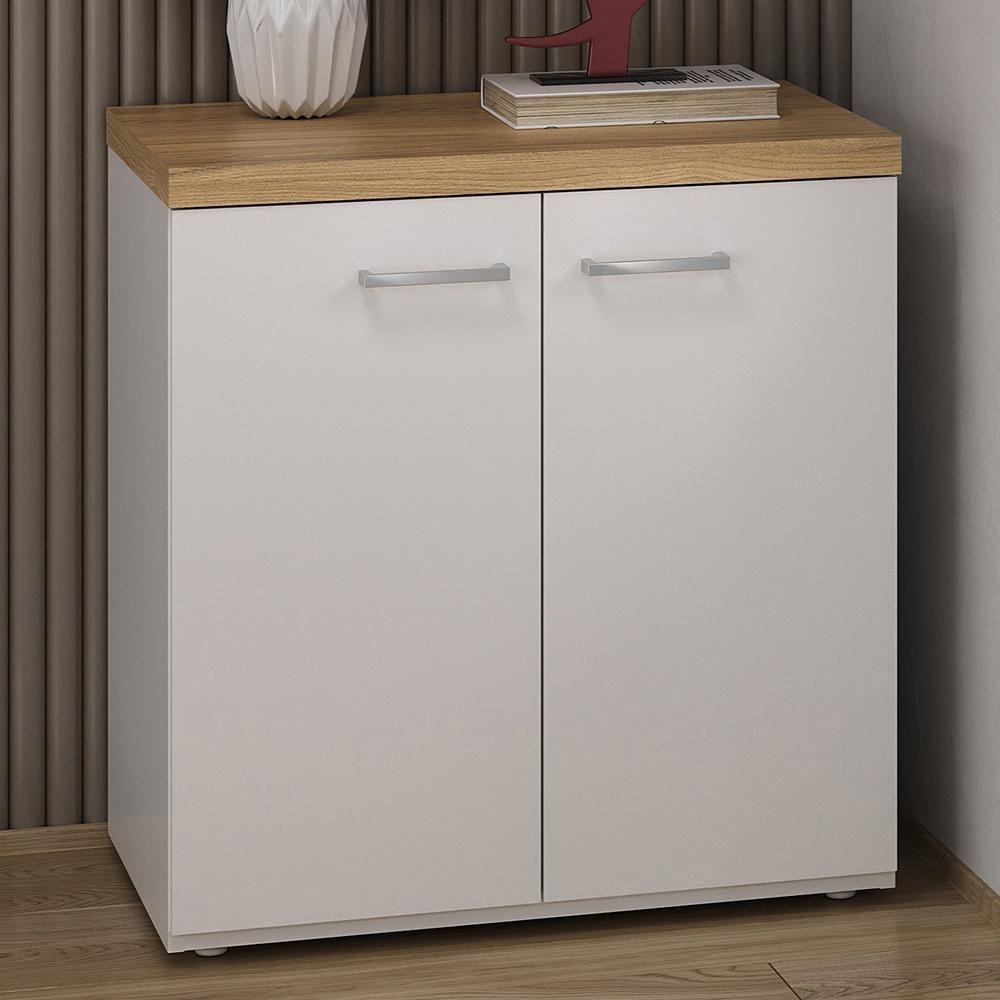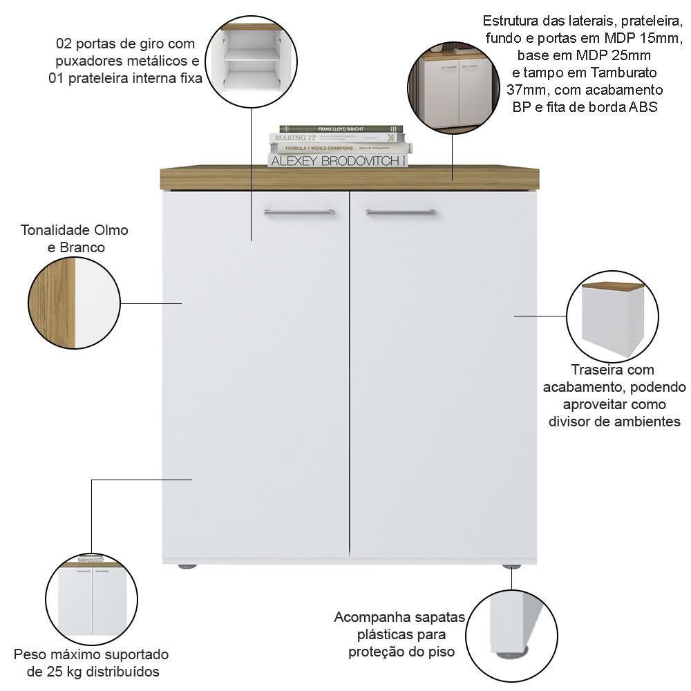 Balcão Para Escritório Home Office Multiuso 2 Portas Orly A02 Olmo Branco - Lyam Decor