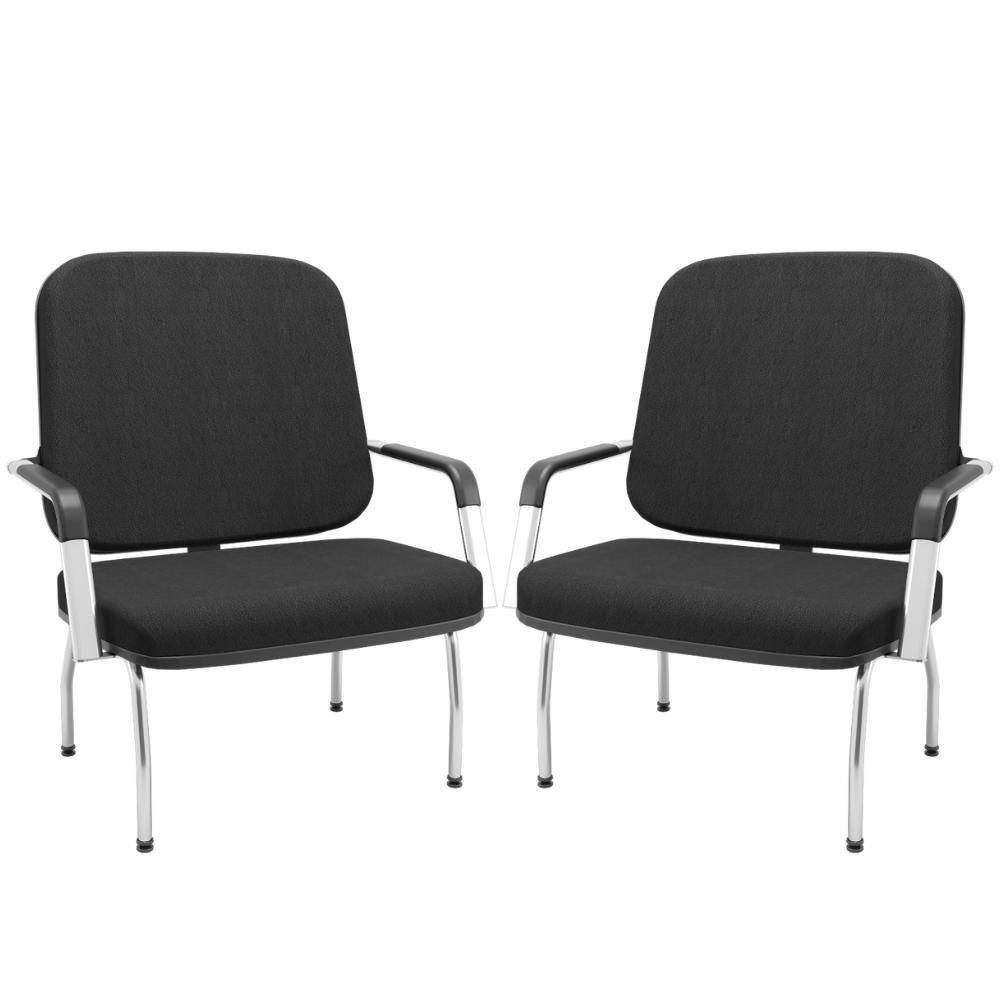 Kit 02 Cadeiras De Escritório Recepção Com Braço Fixa Cromada Magno P03 Crepe Preto - Lyam Decor