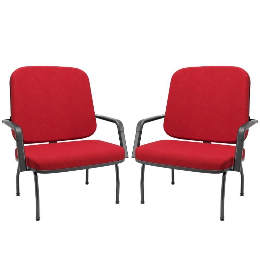 Kit 02 Cadeiras De Escritório Recepção Com Braço Fixa Preta Magno P03 Crepe Vermelho - Lyam Decor