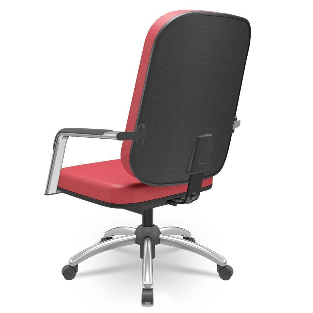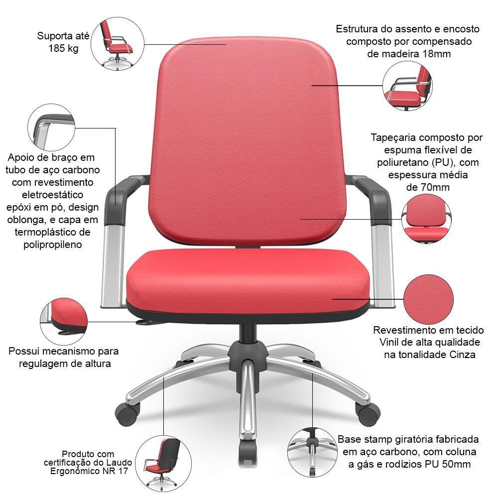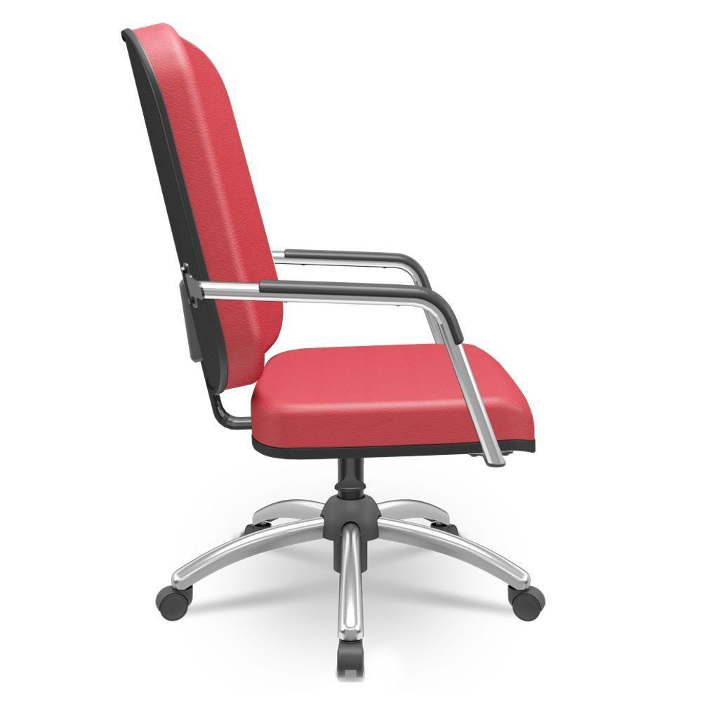 Kit Cadeira De Escritório Giratória E 2 Cadeiras Fixas Cromada Magno P03 Vinil Vermelho - Lyam Decor