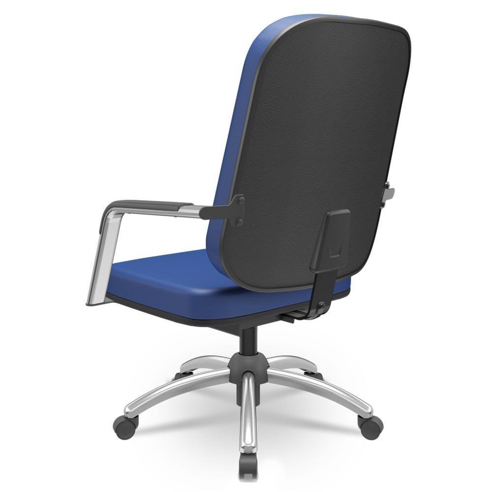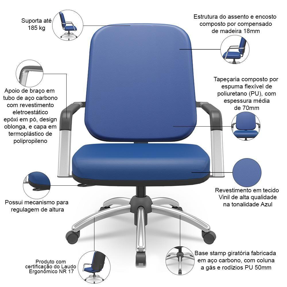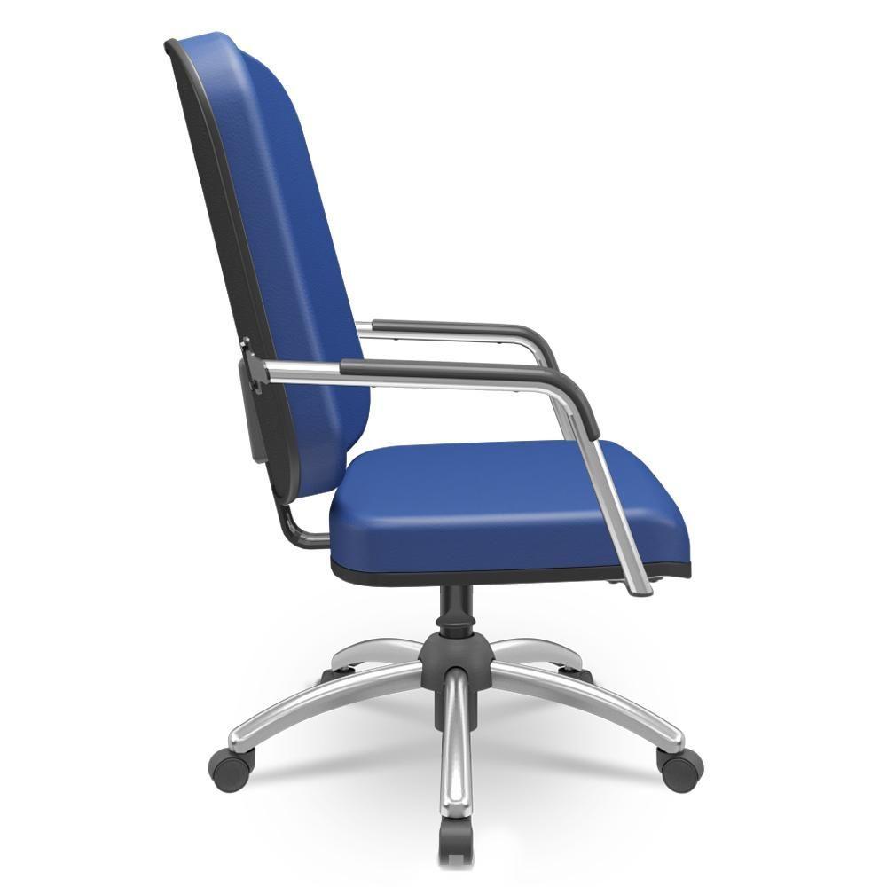 Kit Cadeira De Escritório Giratória E 2 Cadeiras Fixas Cromada Magno P03 Vinil Azul - Lyam Decor