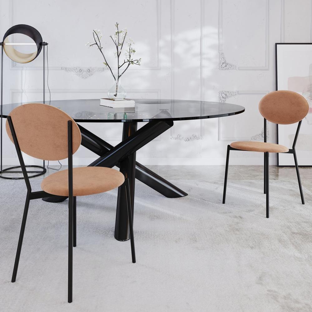 Kit 08 Cadeiras Estofada Para Sala De Jantar Azuri Preto C01 Veludo Bege - Lyam Decor