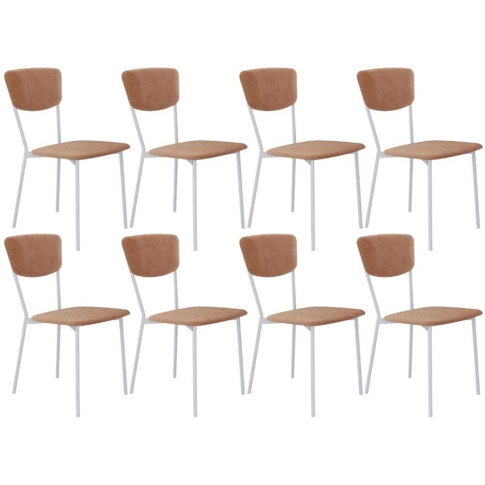 Kit 08 Cadeira Para Sala De Jantar Village Branco C01 Veludo Bege - Lyam Decor
