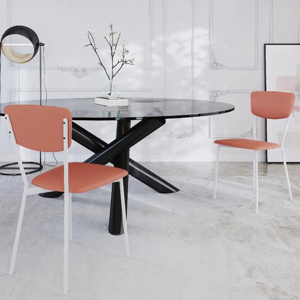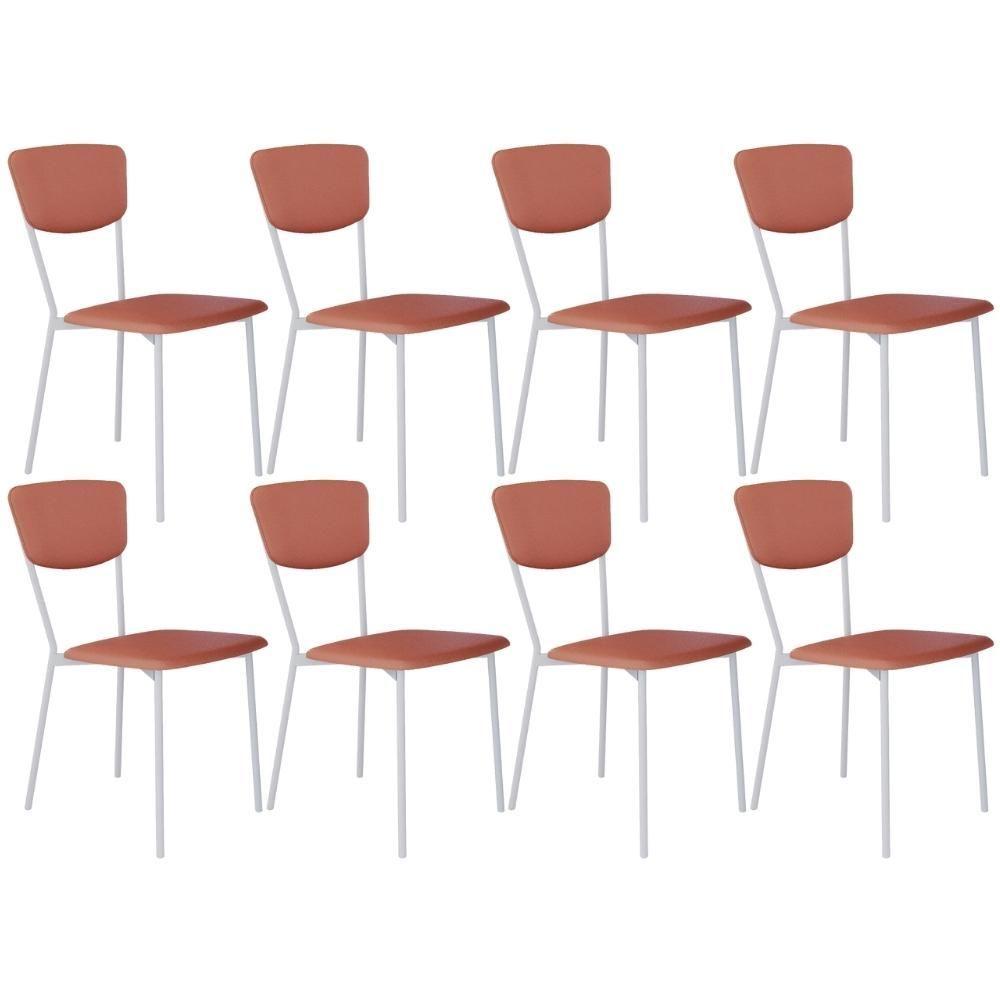 Kit 08 Cadeira Para Sala De Jantar Village Branco C01 Courino Terra Rosê - Lyam Decor