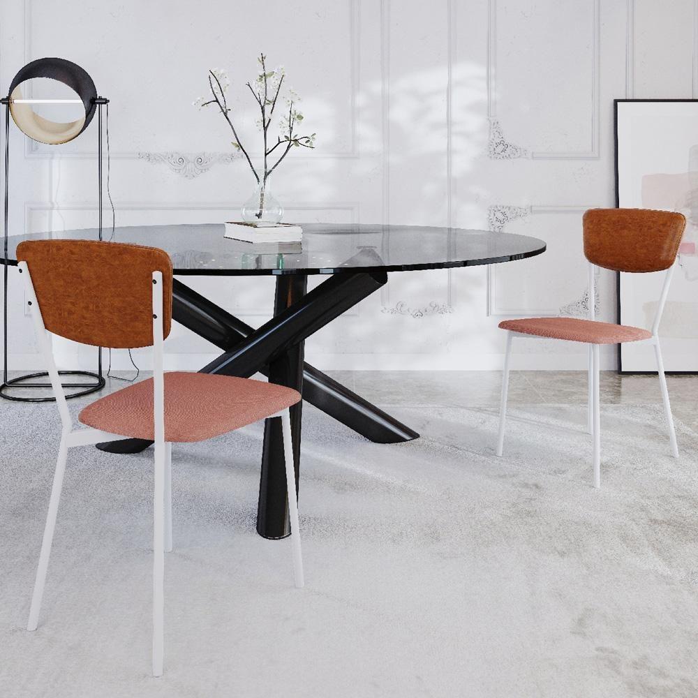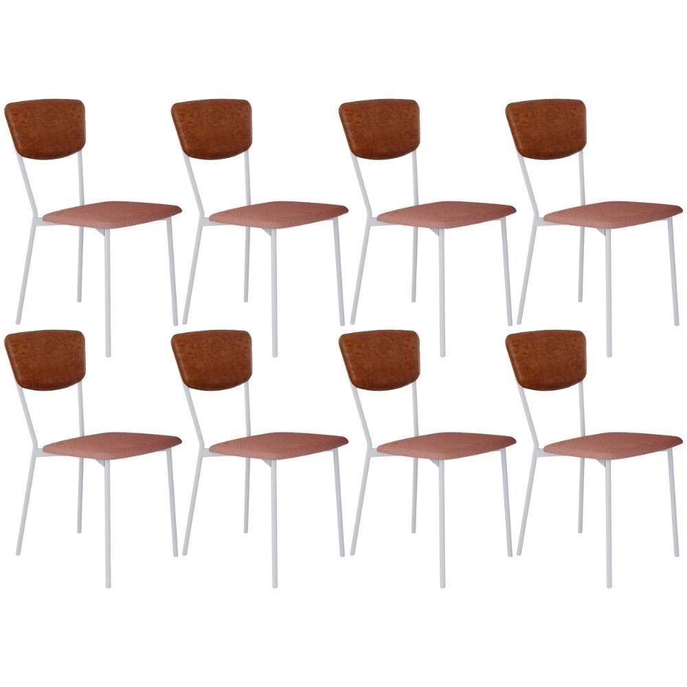 Kit 08 Cadeira Para Sala De Jantar Village Branco C01 Linho Rosê Courino Caramelo - Lyam Decor