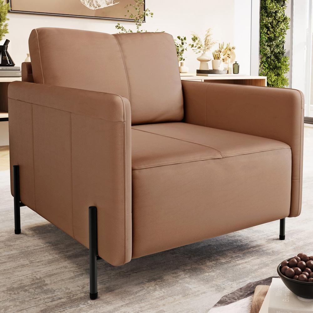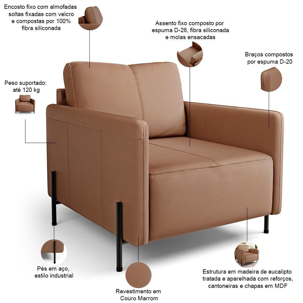 Kit 2 Poltronas Decorativa Para Sala Living Pés Industrial Domani L06 Couro Marrom - Lyam Decor