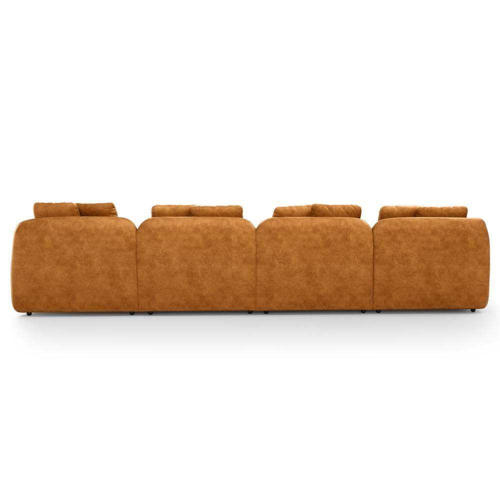 Sofá 5 Lugares Com Chaise Direito Sala Living 394cm Arlo F04 Couríssimo Whisky - Lyam Decor