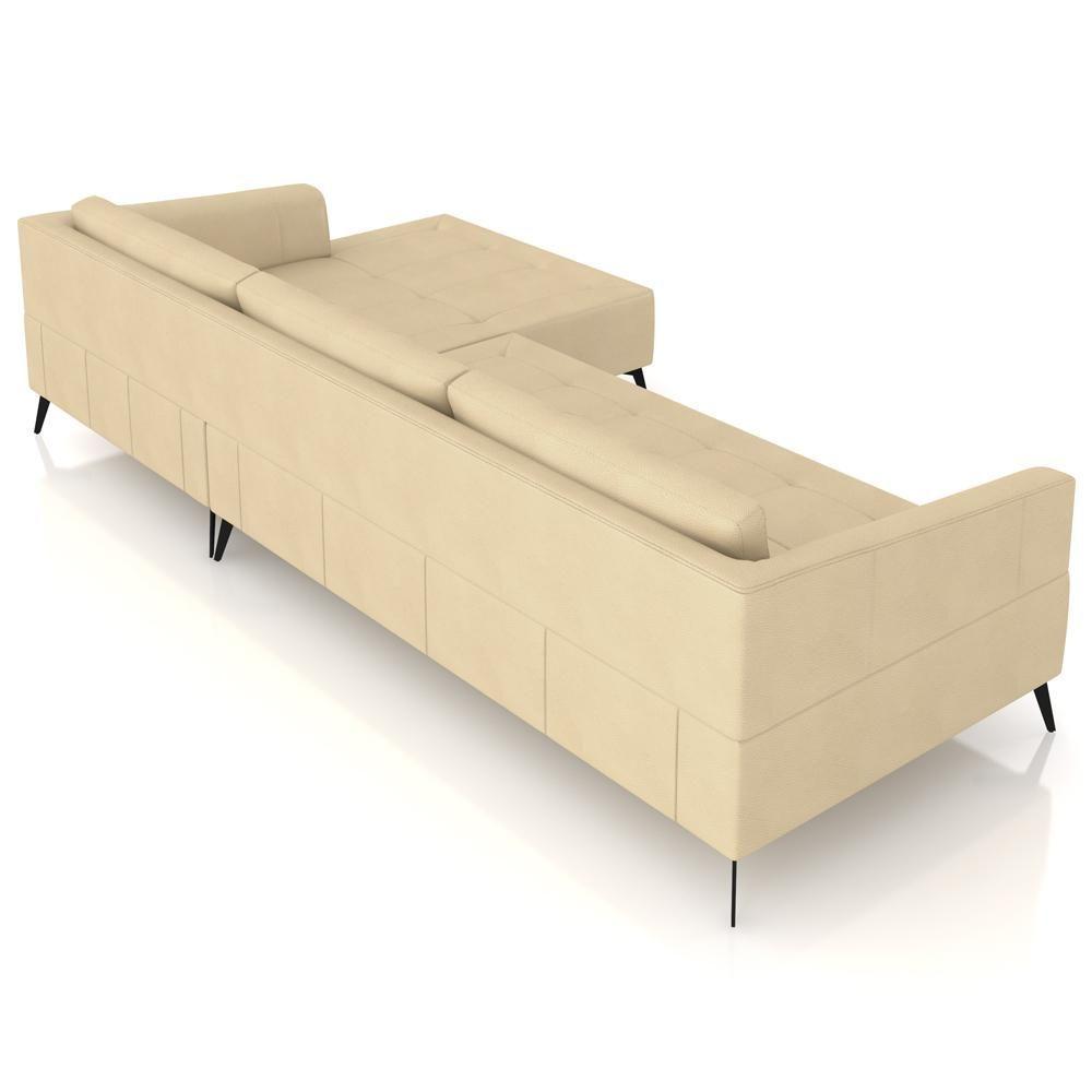 Sofá 3 Lugares Com Chaise Para Sala Living 292cm Tolstoi P08 Couro Bege - Lyam Decor