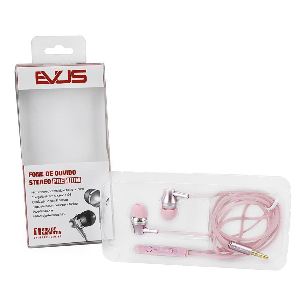 Fone De Ouvido Evus Intra Auricular F-09 Premium 3,5mm RosaInformações do ProdutoFone de Ouvido Stereo Premium- Microfone e controle de volume no cabo - Compativel com Android e IOS - Qualidade de som Premium - Compativel com celulares e tablets - Plug de silicone - Melhor ajuste ao ouvidoInformações TécnicasConexão Plug P2 Stereo 3,5mmComprimento do cabo 1,2mFrequÊncia de resposta 20 Hz a 20 KHzImpedÂncia 32 OhmsSensibilidade 105dB ± 4dBDiÂmetro do alto falante 14,2mmPotÊncia 5mwGarantia 1 Ano