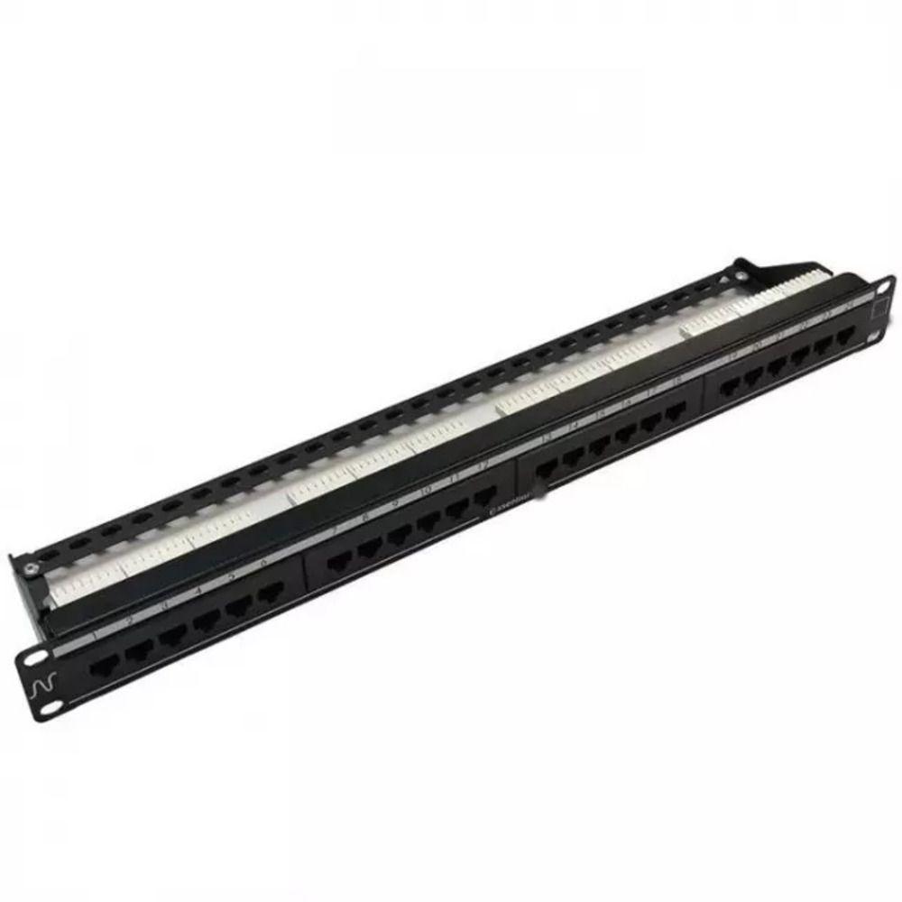 Patch Panel 24 Portas Cat.5e NexansModelo: CAT.5EA linha de patch panel Cat.5e da Nexans oferece largura de banda de 100 MHz para aplicações Classe D de até 1 Gb.A linha foi projetada para atender às necessidades de sistemas de cabeamcabeamento estruturado, horizontal e secundário em salas de telecomunicações, com a função de distribuir com segurança os serviços de voz, dados e imagem.Tipo de conexões: RJ45 e 110/LSA+ IDC