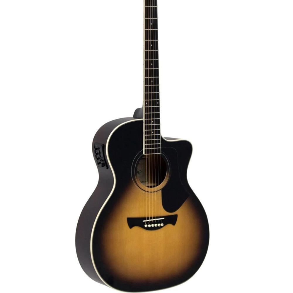 Violão Tagima Rio Negro Eletroacústico Aço Vintage SunburstModelo: Rio NegroO Viol?o Tagima Rio Negro faz parte da linha Latin America, que ? celebra a rica cultura latino-americana por meio de um design visualmente cativante. Com cores vibrantes que refletem a energia da regi?o, este viol?o oferece um custo/benef?cio imbat?vel, unindo qualidade e acessibilidade. O modelo Rio Negro destaca-se por seu formato Grand Auditorium com Cutaway, proporcionando n?o apenas um visual elegante, mas tamb?m um desempenho sonoro excepcional.O corpo em Grand Auditorium oferece graves consistentes, enquanto o cutaway facilita o acesso ?s notas mais altas, ampliando as possibilidades musicais. A constru??o do Rio Negro apresenta um tampo em Spruce, proporcionando resson?ncia e proje??o sonora excepcionais. J? o bra?o em Okume, com shape em C, oferece conforto e facilidade de execu??o.Assim, o Viol?o Tagima Rio Negro ? uma escolha excepcional para m?sicos que buscam um instrumento de qualidade, visualmente impactante e que ressoa com a paix?o e a diversidade da m?sica latino-americana. Seja para iniciantes ou m?sicos experientes, este viol?o oferece uma experi?ncia musical enriquecedora a um pre?o acess?vel.A Tagima foi fundada no ano de 1986 pelo luthier Seizi Tagima, por?m, no ano de 1996 a marca Marutec Music, importadora de equipamentos musicais e eletr?nicos adquiriu a marca. Sendo refer?ncia em qualidade no mercado, a Tagima compete em igual condi??o com marcas internacionais mais bem consagradas da hist?ria.Equaliza??o: Tagima TEQ-8Captadores: PiezoTipo: Grand Auditorium CutawayCordas: 6 cordas em a?oCor: Vintage SunburstTampo: SpruceFaixa e Fundo: AgathisBra?o: Okume - Shape em CEscala: Tech Wood - C 25.5Informa??o adicional:? Cavalete - Purple Heart? Nut - 43mm