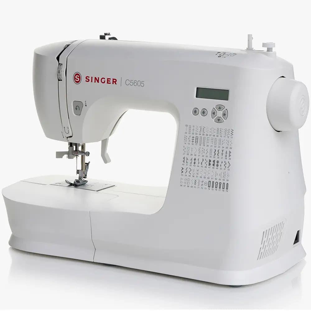 Maquina De Costura Eletronica Singer C5605 - 230383123 Branco 110 VoltsMÁQUINA DE COSTURA ELETÔNICA SINGER C5605 80 PONTOS COM 6 CASAS DE BOTÃOCosture e customize suas roupas no conforto de casa com a Máquina Singer C5605. São 80 pontos a disposição com até 180 opções de aplicação diferentes para você aproveitar!Versatilidade!A C5605 possui painel LCD, que torna a escolha de pontos e seu uso muito mais intuitivo! Sejam pontos flexíveis, decorativos ou até os mais simples não importa! Aproveite também as 6 casas de botão, passador de agulha, braço livre, caseador de botão automático e a opção de retrocesso para costurar de forma mais ágil e precisa.AcessóriosA Máquina C5605 acompanha Sapatilha de uso geral, Sapatilha para zíper, Sapatilha da casa de botão de um passo. Sapatilha para costurar botão, 04 Bobinas, carretilha de metal Classe 15, 02 Discos de feltro, Tampo do carretel Pino porta-carretel auxilia, Pincel para limpeza e abridor de casas, Chave de Fenda, Guia de bordas/quilting. Placa isoladora e Cartela de agulhas.