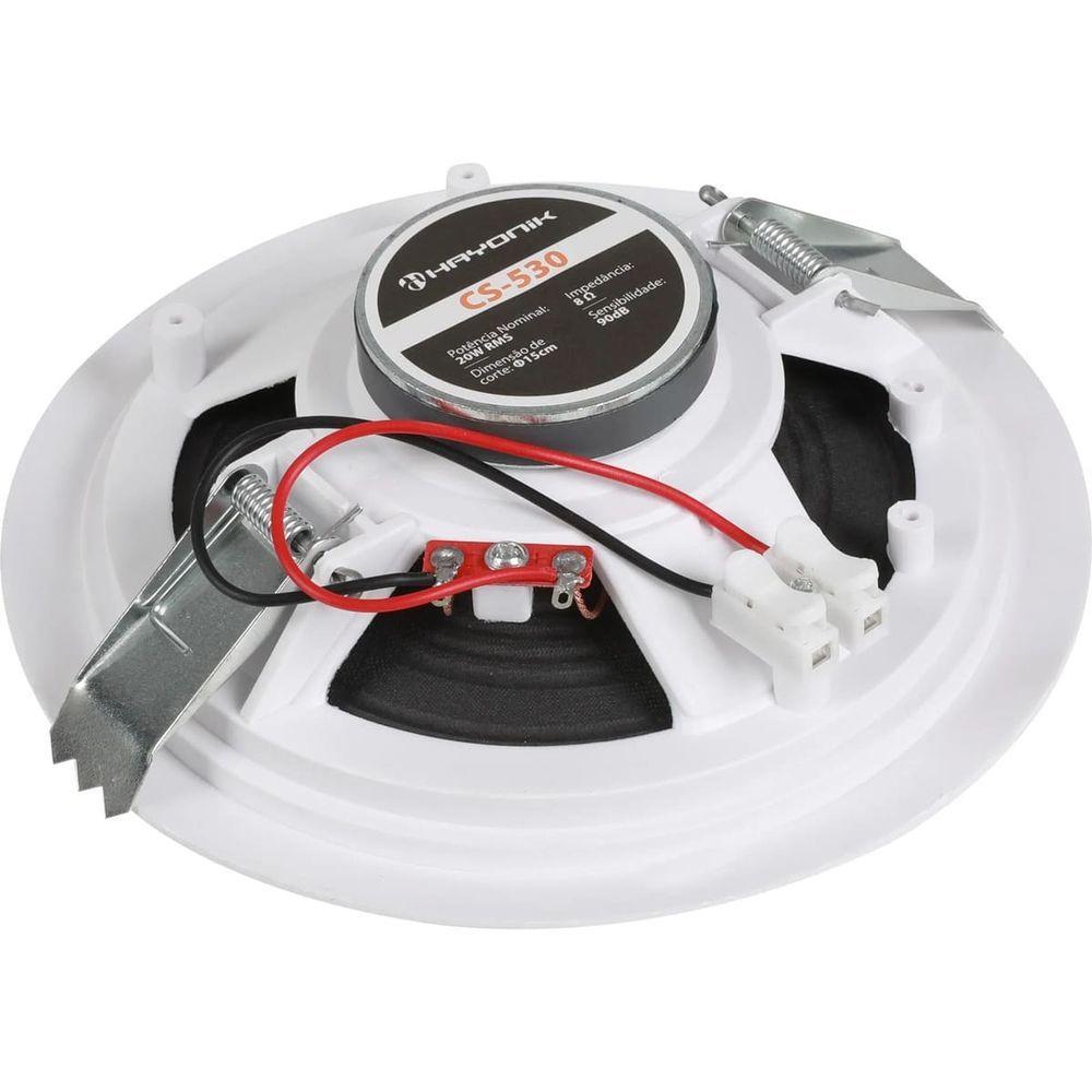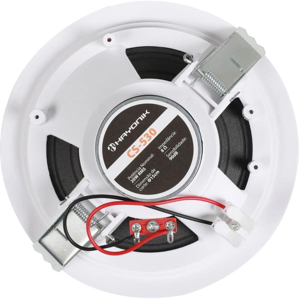 Arandela Hayonik Cs-530 Branca 20 W RmsModelo: CS-530A Arandela Hayonik CS-530 é uma solução acessível e de qualidade para quem busca uma sonorização eficiente em ambientes comerciais e residenciais.Com woofer de 5, ela faz parte da linha CS, que oferece opções versáteis com modelos CS e CS Plus. Ideal para espaços como hospitais, maternidades e ambientes corporativos, seu design discreto permite integração fácil e harmoniosa, sem comprometer o desempenho. Além disso, a Arandela Hayonik CS-530 proporciona uma sonorização clara e confiável, garantindo praticidade e excelente performance sonora em diversas aplicações.EspecificaçõesCor: BrancaPotência: Nominal: 20 W RMSPotência Pico: 40 WSensibilidade: (1w/1m): 90dBImpedância: 8 ohmsDimensões: do produto: F170mmDimensões do corte: F150mmPeso: 0,370 KgResposta Frequência: 130Hz-16KHzOutrosInformação adicional:? Woofer: 5 (120mm) Cone de papel? Arandela plástica? Tela metálica? Proteção UV? Gabarito para corte